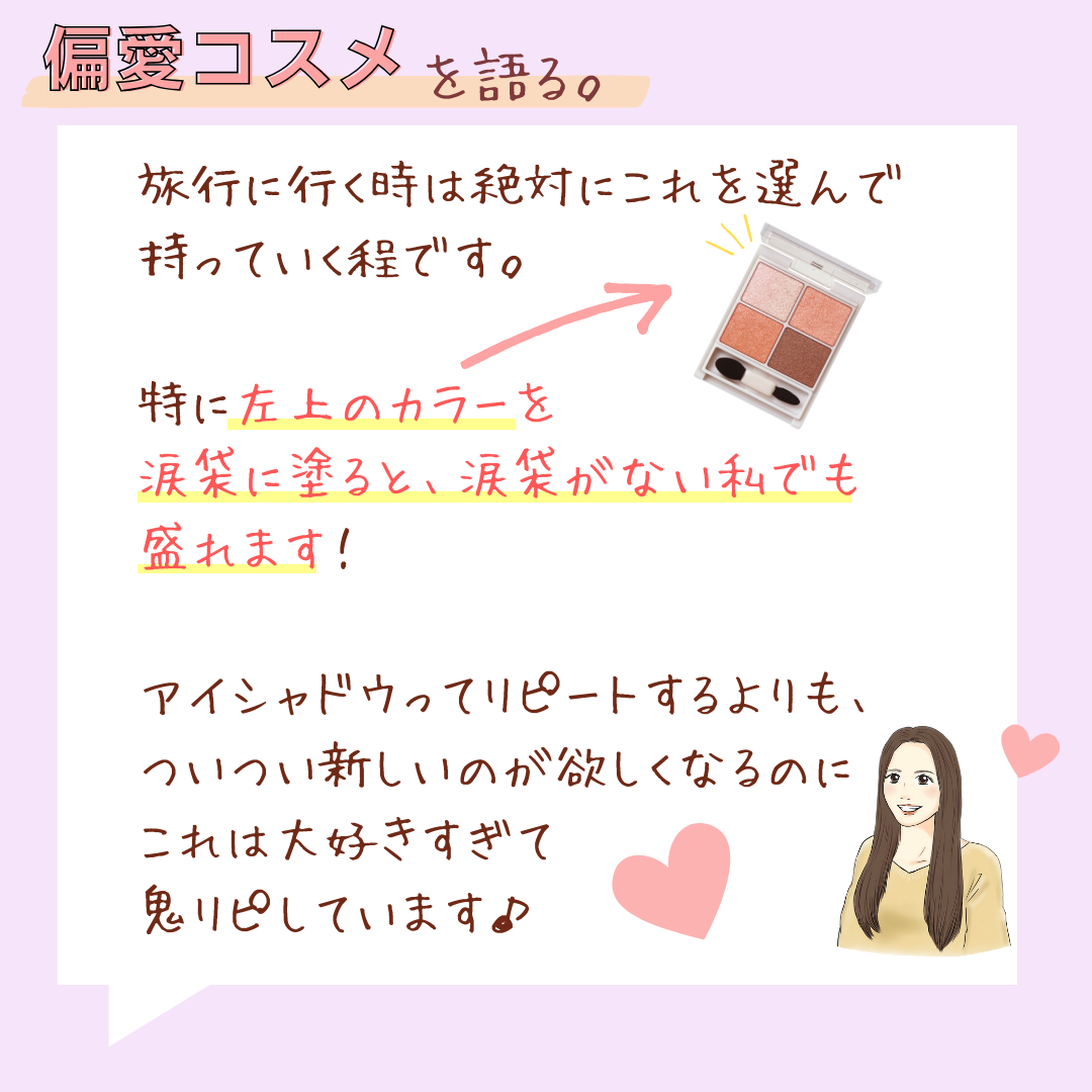 | アイシャドウパレットランキング第40位 | まず色がひたすら可愛い。ちょっとしっとりめなのでちゃんと密着してくれる。なにより好きなのが、上品さよ。 | 詳細を見る | |