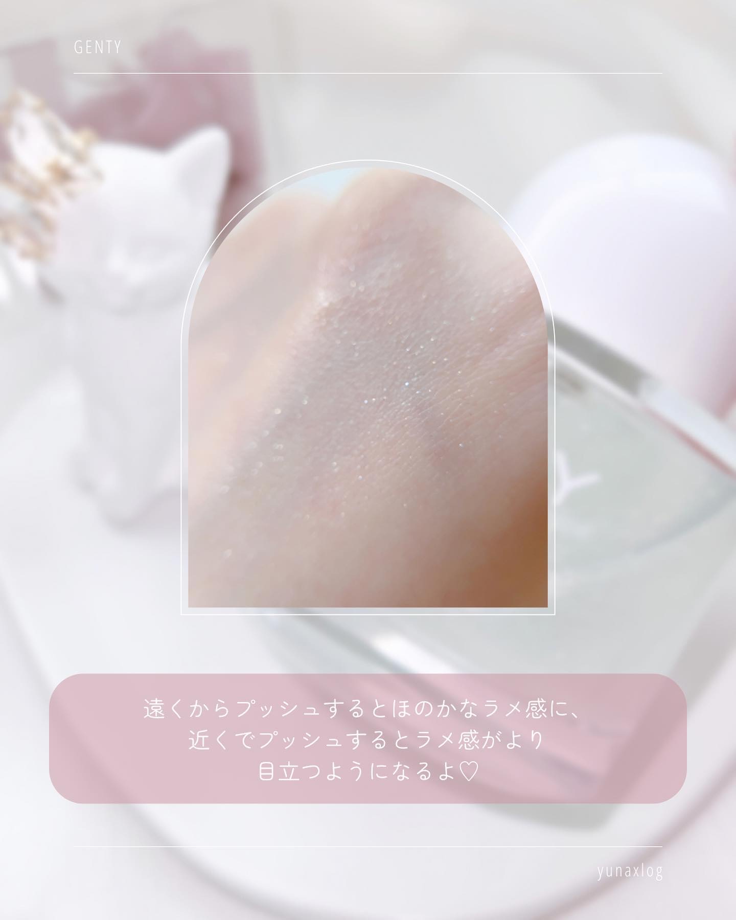 本品は、まずコロンとしたボトルが可愛い! シャンパンゴールドとシルバーのラメが美しくお部屋に飾っておくだけでもテンションが上がりそうです💫 1プッシュでも結構出てくるので同じ場所に何回もプッシュする必要はなくコスパがいいなと思いました☘️ フローラルの甘い良い香りがして、お肌にはしっかりラメも密着してくれます 香りと見た目をたった1プッシュでオシャレに魅せてくれるので使うたびに気分が上がります💐 ラメは大粒ではなく、さりげなくきらめく感じなのでシーンを選ばずに使えるのも嬉しい! ぜひみなさんのフレグランスアイテムの参考になれば幸いです🍒