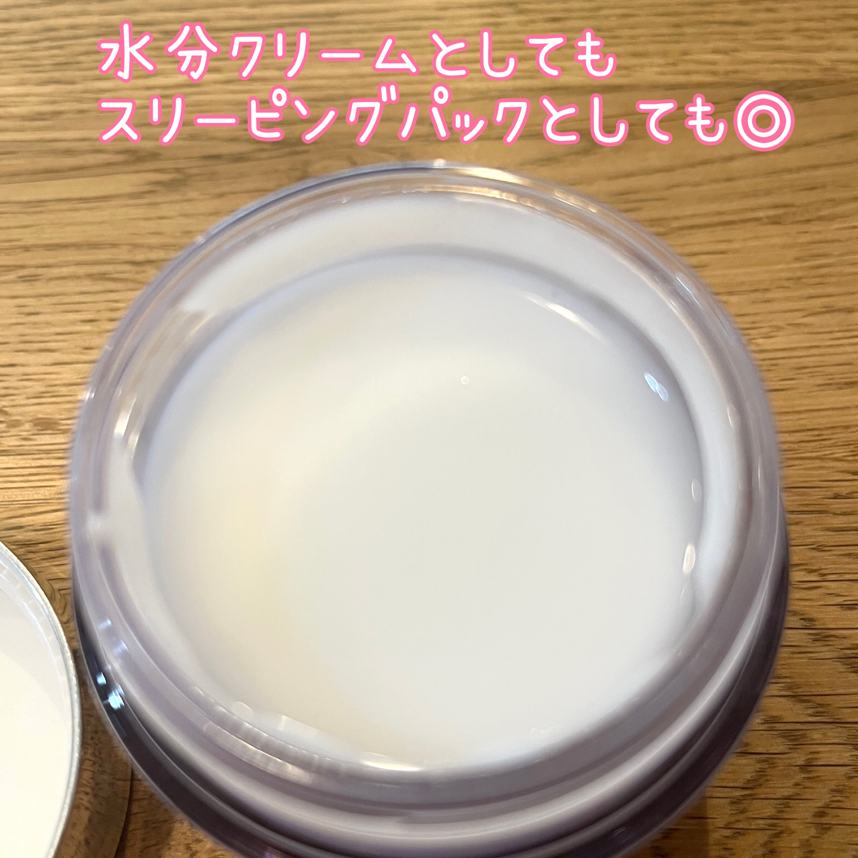 ビタミンE・ナイアシンアミド・アデノシンなど 明るく透明感のある若々しい肌へ。 杏仁豆腐みたいなテクスチャーも面白い。乾燥が気になる日にはたっぷり塗ってプルプル肌に。 ほんのりラベンダーのような香り。ビタミンチャージセラムとセット使いでさらにサポートしてくれるそう^ ^
