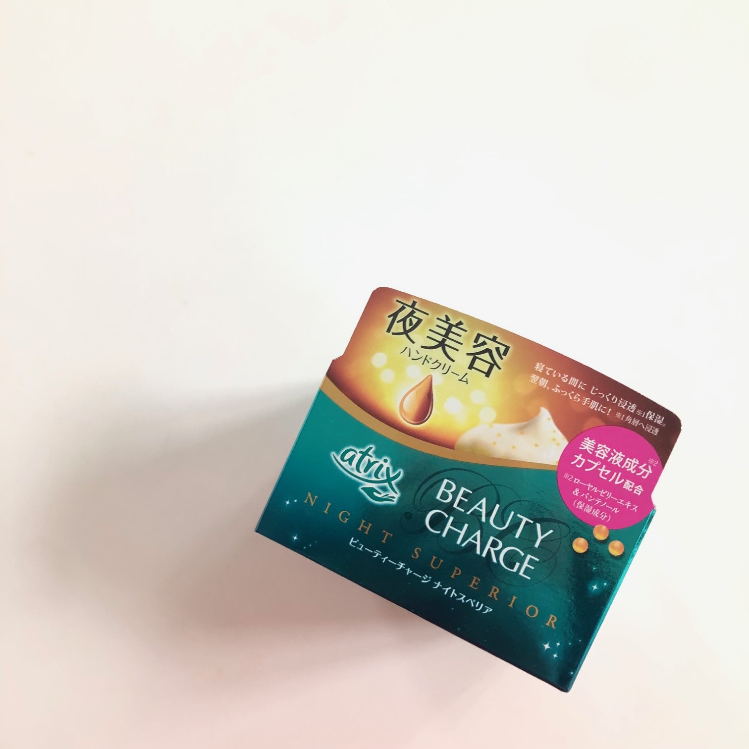 アトリックス ビューティーチャージナイトスペリア美容液ハンドクリーム夜美容で翌朝ふっくらハリのある手肌に気になる爪、指先まで潤って美しく。こっくり濃厚なクリームにたっぷりの美容液成分がぎゅっと詰まったカプセルを配合した美容液ハンドクリーム寝て...