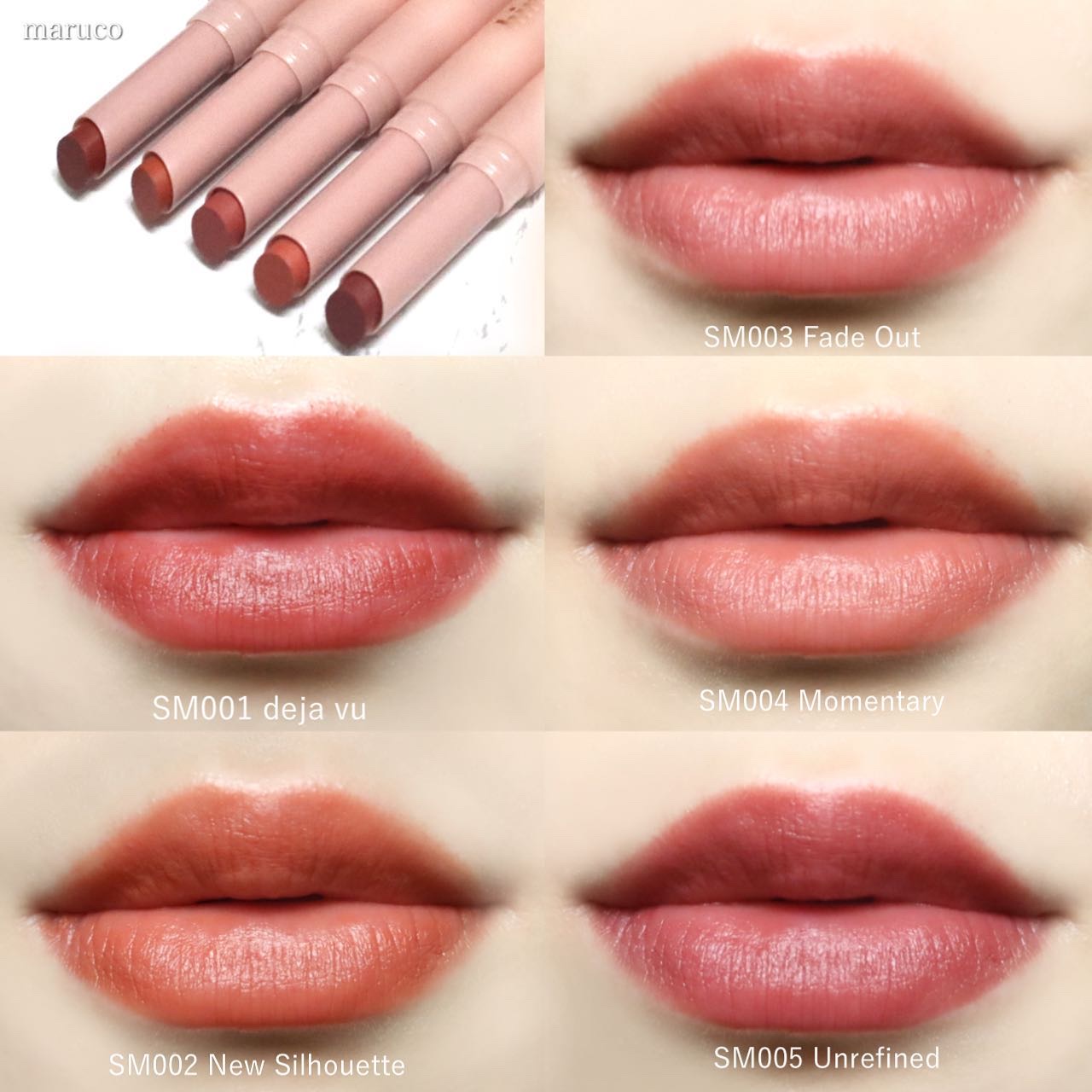 - <SM001 デジャヴ > ジメチコン、アジピン酸ジブチル、イソノナン酸イソノニル、フェニルトリメチコン、合成ワックス、ビスジグリセリルポリアシルアジペート-2、トリイソステアリン酸ポリグリセリル-2、合成フルオロフロゴパイト、(ビニルジメチコン/メチコンシルセスキオキサン)クロスポリマー、ラウロイルグルタミン酸ジ(オクチルドデシル/フィトステリル/ベヘニル)、ジメチコンクロスポリマー、ダイマージリノール酸水添ヒマシ油、ジ(カプリル/カプリン酸)BG、硫酸Ba、リンゴ酸ジイソステアリル、ヒマワリ種子ロウ、(セバシン酸/イソパルミチン酸)ジグリセリル、シリカ、キャンデリラロウエステルズ、ジイソステアリン酸ポリグリセリル-2、ポリヒドロキシステアリン酸、ジステアルジモニウムヘクトライト、ステアロイルグルタミン酸2Na、カルナウバロウ、パルミチン酸エチルヘキシル、ミリスチン酸イソプロピル、イソステアリン酸、レシチン、クエン酸トリエチル、ポリリシノレイン酸ポリグリセリル-3、トリエトキシカプリリルシラン、ミリスチン酸Mg、トコフェロール、(+/-)青1、酸化鉄、マイカ、赤227、赤202、酸化チタン、黄4、黄5 <SM002 ニューシルエット> ジメチコン、アジピン酸ジブチル、イソノナン酸イソノニル、フェニルトリメチコン、合成ワックス、ビスジグリセリルポリアシルアジペート-2、トリイソステアリン酸ポリグリセリル-2、合成フルオロフロゴパイト、(ビニルジメチコン/メチコンシルセスキオキサン)クロスポリマー、ラウロイルグルタミン酸ジ(オクチルドデシル/フィトステリル/ベヘニル)、ジメチコンクロスポリマー、ダイマージリノール酸水添ヒマシ油、酸化鉄、リンゴ酸ジイソステアリル、硫酸Ba、ジ(カプリル/カプリン酸)BG、酸化チタン、ヒマワリ種子ロウ、(セバシン酸/イソパルミチン酸)ジグリセリル、シリカ、キャンデリラロウエステルズ、ポリヒドロキシステアリン酸、ジステアルジモニウムヘクトライト、ステアロイルグルタミン酸2Na、赤202、カルナウバロウ、パルミチン酸エチルヘキシル、ミリスチン酸イソプロピル、イソステアリン酸、レシチン、ジイソステアリン酸ポリグリセリル-2、クエン酸トリエチル、マイカ、ポリリシノレイン酸ポリグリセリル-3、トリエトキシカプリリルシラン、ミリスチン酸Mg、トコフェロール <SM003 フェードアウト> ジメチコン、アジピン酸ジブチル、イソノナン酸イソノニル、フェニルトリメチコン、合成ワックス、ビスジグリセリルポリアシルアジペート-2、合成フルオロフロゴバイト、(ビニルジメチコン/メチコンシルセスキオキサン)クロスポリマー、トリイソステアリン酸ポリグリセリル-2、ラウロイルグルタミン酸ジ(オクチルドデシル/フィトステリル/ベヘニル)、ジメチコンクロスポリマー、リンゴ酸ジイソステアリル、ダイマージリノール酸水添ヒマシ油、酸化チタン、硫酸Ba、ジ(カプリル/カプリン酸)BG、ヒマワリ種子ロウ、酸化鉄、(セバシン酸/イソパルミチン酸)ジグリセリル、シリカ、キャンデリラロウエステルズ、赤227、ポリヒドロキシステアリン酸、ジステアルジモニウムヘクトライト、赤202、ステアロイルグルタミン酸2Na、ジイソステアリン酸ポリグリセリル-2、カルナウバロウ、パルミチン酸エチルヘキシル、ミリスチン酸イソプロピル、イソステアリン酸、レシチン、クエン酸トリエチル、青1、ポリリシノレイン酸ポリグリセリル-3、トリエトキシカプリリルシラン、ミリスチン酸Mg、トコフェロール <SM004 モーメンタリー> ジメチコン、アジピン酸ジブチル、イソノナン酸イソノニル、フェニルトリメチコン、合成ワックス、ビスジグリセリルポリアシルアジペート-2、合成フルオロフロゴパイト、(ビニルジメチコン/メチコンシルセスキオキサン)クロスポリマー、ラウロイルグルタミン酸ジ(オクチルドデシル/フィトステリル/ベヘニル)、トリイソステアリン酸ポリグリセリル-2、ジメチコンクロスポリマー、リンゴ酸ジイソステアリル、ダイマージリノール酸水添ヒマシ油、酸化チタン、硫酸Ba、ジ(カプリル/カプリン酸)BG、ヒマワリ種子ロウ、(セバシン酸/イソパルミチン酸)ジグリセリル、酸化鉄、シリカ、キャンデリラロウエステルズ、ポリヒドロキシステアリン酸、ジステアルジモニウムヘクトライト、赤202、ステアロイルグルタミン酸2Na、ジイソステアリン酸ポリグリセリル-2、黄4、カルナウバロウ、パルミチン酸エチルヘキシル、ミリスチン酸イソプロピル、イソステアリン酸、レシチン、クエン酸トリエチル、ポリリシノレイン酸ポリグリセリル-3、トリエトキシカプリリルシラン、ミリスチン酸Mg、トコフェロール <SM005 アンリファインド> ジメチコン、アジピン酸ジブチル、イソノナン酸イソノニル、フェニルトリメチコン、合成ワックス、ビスジグリセリルポリアシルアジペート-2、トリイソステアリン酸ポリグリセリル-2、合成フルオロフロゴパイト、(ビニルジメチコン/メチコンシルセスキオキサン)クロ
