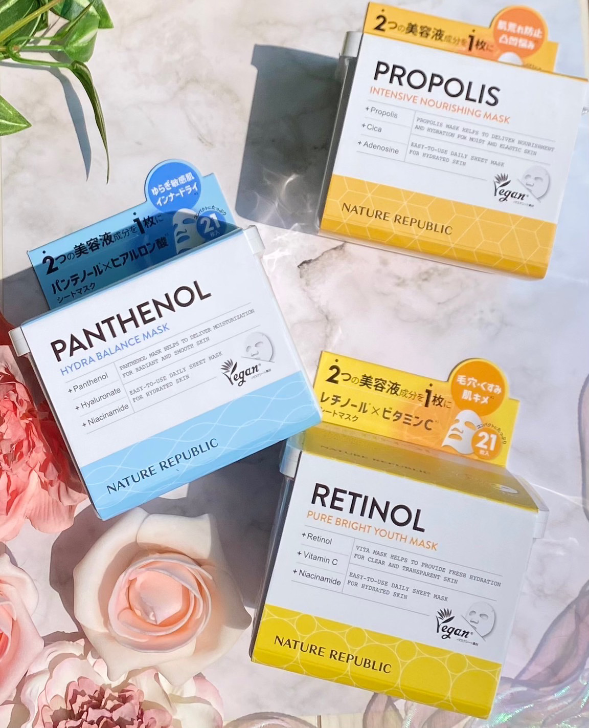 NATUREREPUBLICレチノールピュアブライトユースシートマスク パンテノールハイドラバランスシートマスクプロポリスインテンシブナリシングシートマスク内容量▷▶21枚入り販売価格▶各1,870円(税込)𓈒𓏸𓐍𓂃𓈒𓏸𓂃◌𓈒𓐍𓈒𓈒𓏸𓐍𓂃𓈒𓏸...