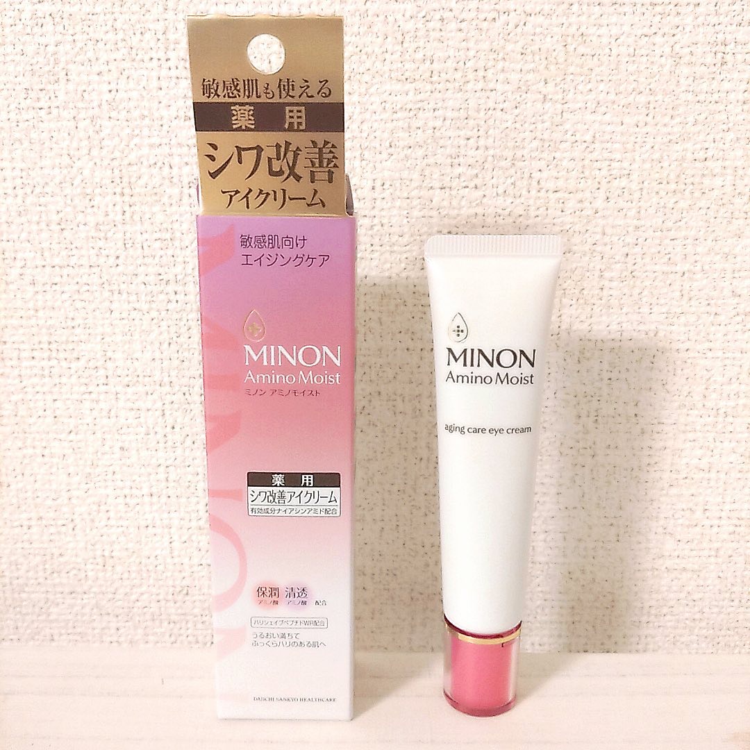 - 【敏感肌も使える薬用シワ改善アイクリーム】 ダブルの有効成分配合。気になるシワを改善し、しみ・そばかす*1、肌あれを防ぎます。 ●ナイアシンアミド:シワ改善&しみ予防 ●グリチルリチン酸2K:肌あれ予防 ハリを与えつや肌に導く「ハリシェイプペプチドWR*2」配合。 使い続けるたび、シワを改善し、うるおってハリのある明るい印象の目元へ。 エイジングケア:年齢に応じたお手入れケア *1メラニンの生成を抑え、しみ・そばかすを防ぐ *2ヤシ油脂肪酸水解コラーゲンK (販売名:ミノンアミノモイストAE)【医薬部外品】