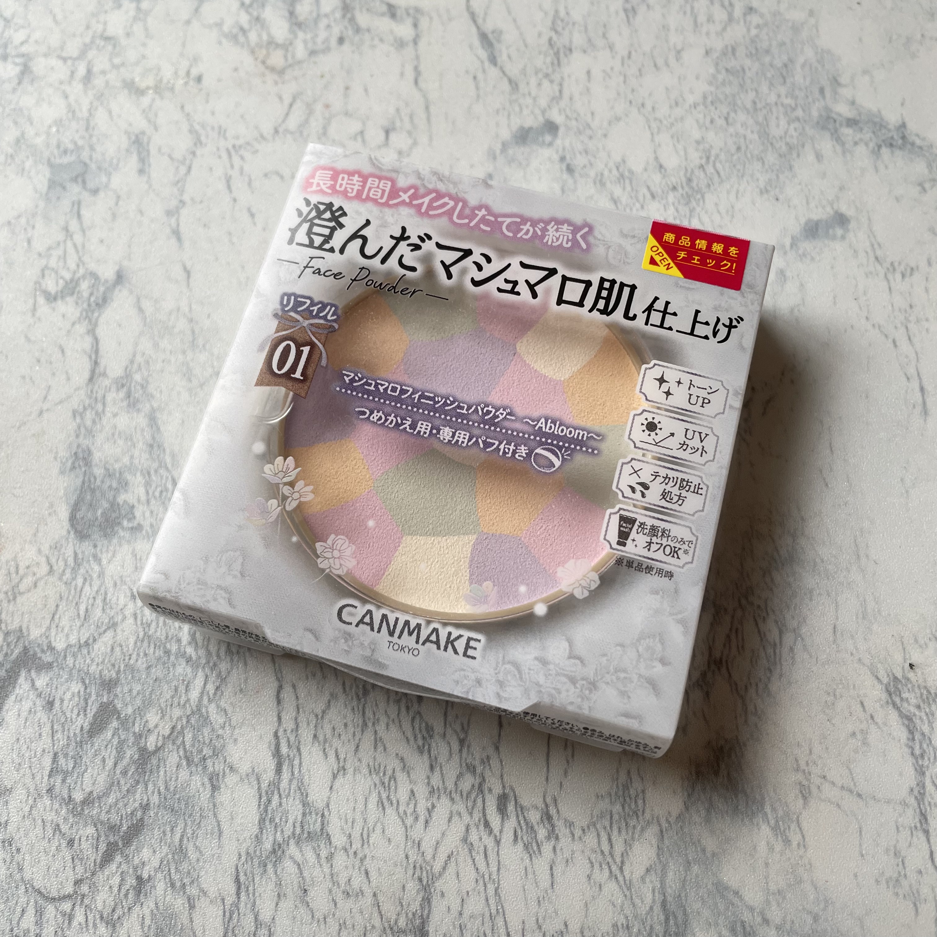 - 長時間崩れにくい 澄んだマシュマロ肌仕上げのフィニッシュパウダー マシュマロフィニッシュパウダーのふわふわマットな仕上がりはそのまま、 ワントーンアップした透明美肌に仕上がるAbloomタイプ。 5色を混ぜて使うことで、顔色補正効果&トーンアップ! 濁りのない澄んだ肌が長時間続きます。 汗・皮脂崩れ・乾燥に強く、長時間メイク崩れを防止します。