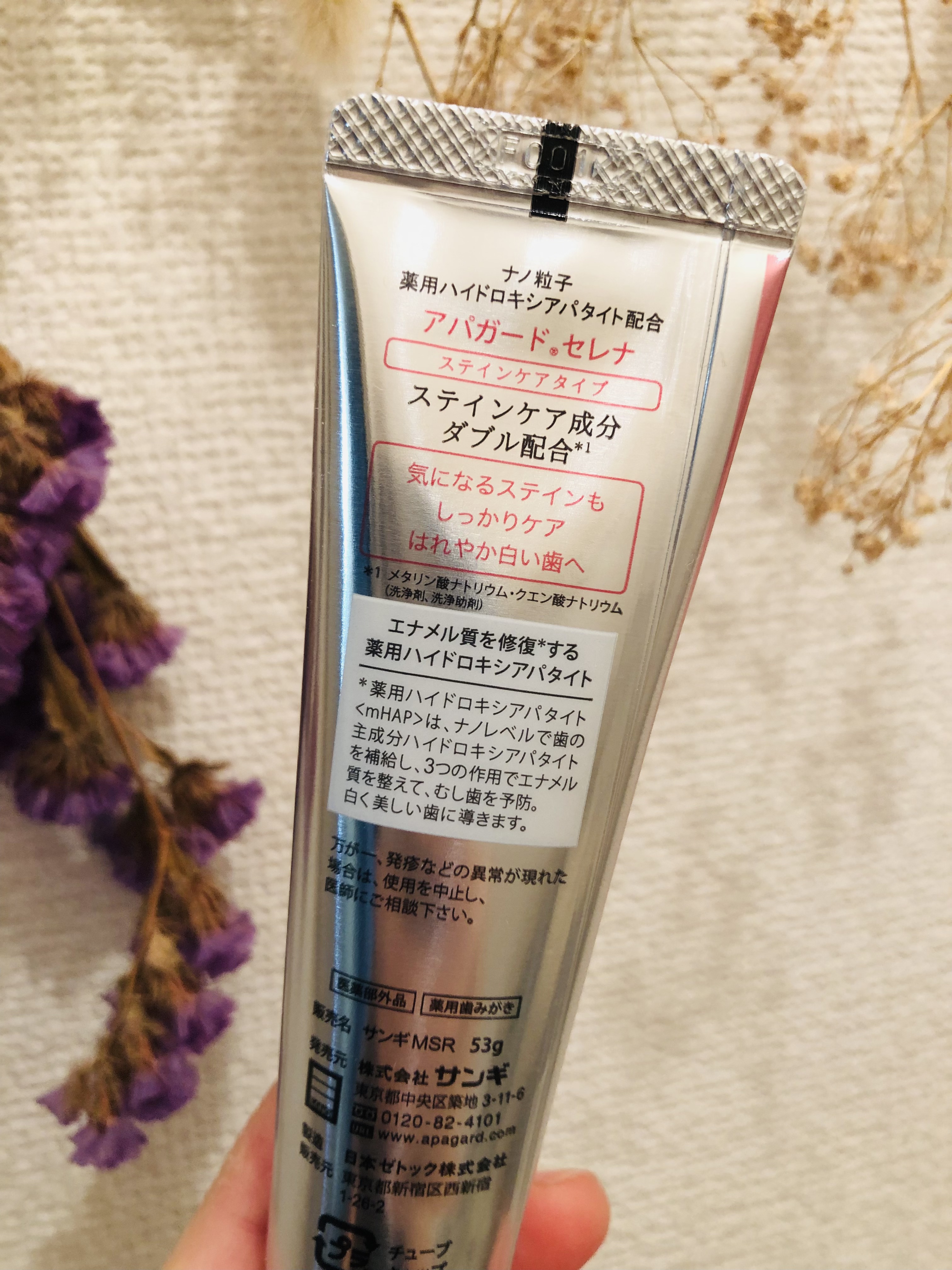独自成分「薬用ハイドロキシアパタイト」がエナメル質を整えてむし歯を予防‼️アパガードはエナメル質の健康を保つことで自然な白い歯に導く美白歯みがきブランド💁アパガードセレナは、コーヒー・紅茶・ワインなどによる着色汚れを落とすステインケア成分をダ...