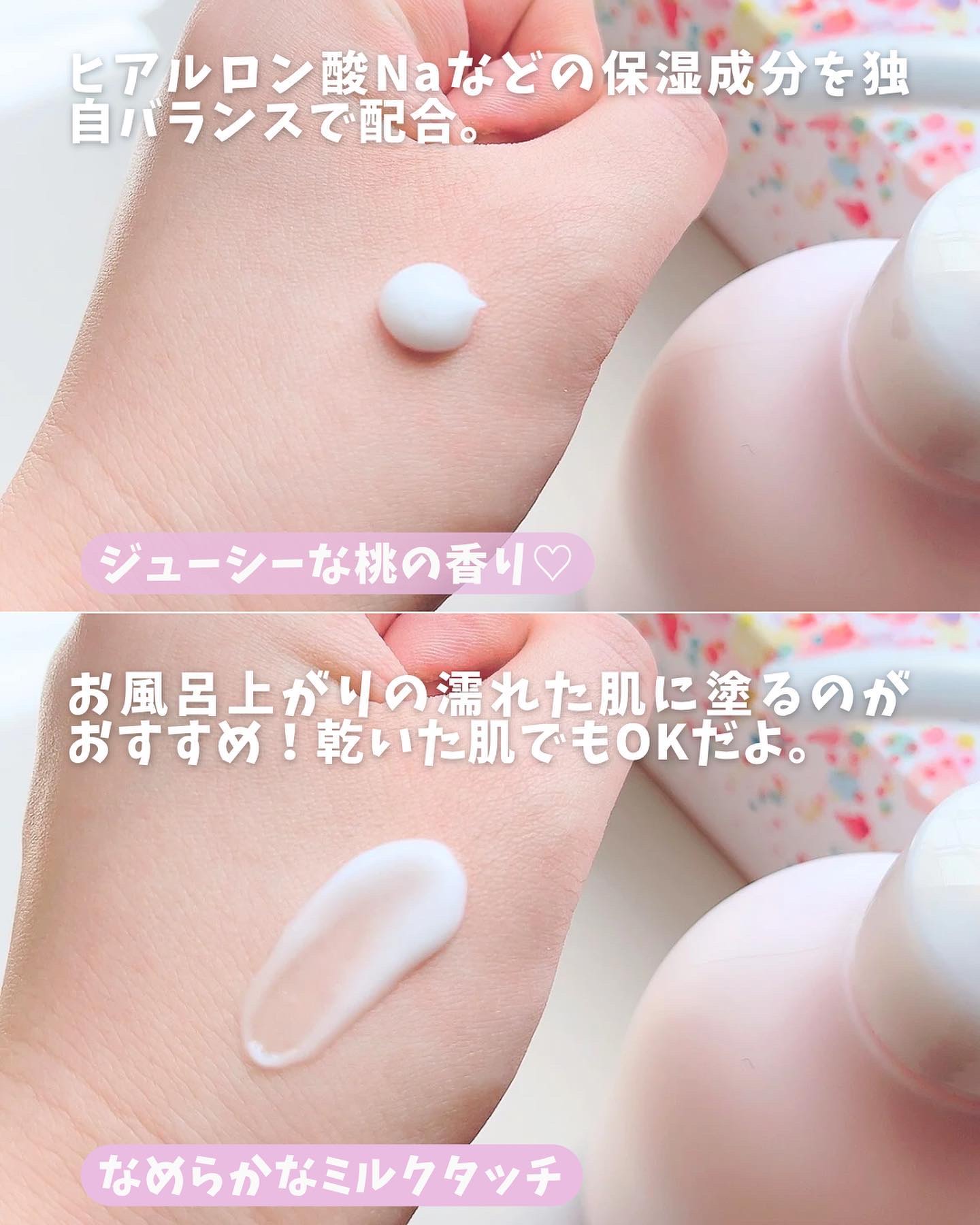meshimaseボディミルクペアー桃の香りの方を使ってみてよかったのでこっちも購入してみました✨お風呂上がりに濡れたままで塗れるボディミルク🪄乾いた肌にも塗れるので2wayで使用できます🥹私は肌が乾燥しやすいのでこのボディミルクをお風呂上が...