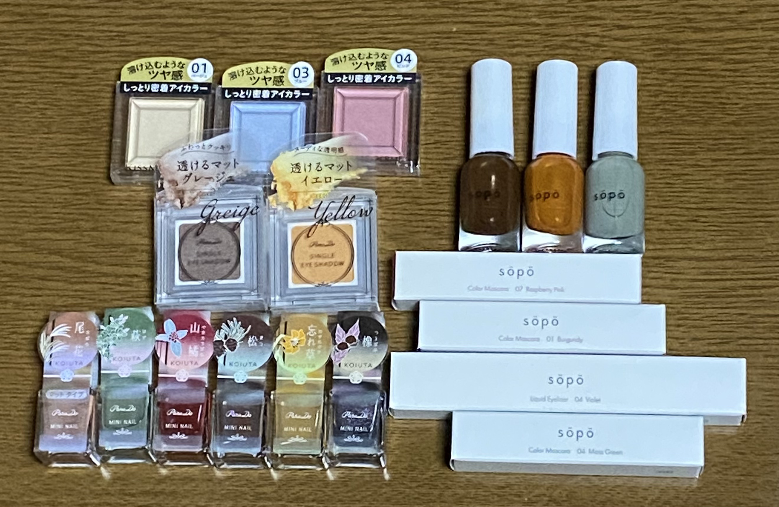 - <グレージュ> 酢酸ブチル、酢酸エチル、ニトロセルロース、クエン酸アセチルトリブチル、(無水フタル酸/無水トリメリト酸/グリコールズ)コポリマー、イソプロパノール、安息香酸スクロース、ステアラルコニウムヘクトライト、(アジピン酸/フマル酸/フタル酸/トリシクロデカンジメタノール)コポリマー、ジメチコン、ジ(C12-15)パレス-2リン酸、クエン酸、アクリレーツコポリマー、水、カニナバラ果実油、PG、BG、センチフォリアバラ花エキス、モモ葉エキス、トコフェロール、ジパルミチン酸アスコルビル、酸化チタン、マンガンバイオレット、酸化鉄、黄4、赤202、赤201、硫酸Ba、コンジョウ <モーヴピンク> 酢酸ブチル、酢酸エチル、ニトロセルロース、クエン酸アセチルトリブチル、(無水フタル酸/無水トリメリト酸/グリコールズ)コポリマー、イソプロパノール、安息香酸スクロース、ステアラルコニウムヘクトライト、(アジピン酸/フマル酸/フタル酸/トリシクロデカンジメタノール)コポリマー、(アジピン酸/ネオペンチルグリコール/無水トリメリト酸)コポリマー、ジメチコン、ジ安息香酸DPG、ジ(C12-15)パレス-2リン酸、ステアラルコニウムベントナイト、水酸化Al、クエン酸、トリエトキシカプリリルシラン、メチコン、タルク、水、カニナバラ果実油、PG、BG、センチフォリアバラ花エキス、モモ葉エキス、トコフェロール、ジパルミチン酸アスコルビル、酸化チタン、マンガンバイオレット、酸化鉄、赤202、黄4、コンジョウ <テラコッタ> 酢酸ブチル、酢酸エチル、ニトロセルロース、クエン酸アセチルトリブチル、(無水フタル酸/無水トリメリト酸/グリコールズ)コポリマー、イソプロパノール、安息香酸スクロース、ステアラルコニウムヘクトライト、(アジピン酸/フマル酸/フタル酸/トリシクロデカンジメタノール)コポリマー、(アジピン酸/ネオペンチルグリコール/無水トリメリト酸)コポリマー、ジメチコン、ジ安息香酸DPG、ジ(C12-15)パレス-2リン酸、ステアラルコニウムベントナイト、クエン酸、メチコン、タルク、水酸化Al、トリエトキシカプリリルシラン、水、カニナバラ果実油、PG、BG、センチフォリアバラ花エキス、モモ葉エキス、トコフェロール、ジパルミチン酸アスコルビル、マンガンバイオレット、酸化鉄、酸化チタン、赤202、黄4、コンジョウ <ライムイエロー> 酢酸ブチル、酢酸エチル、ニトロセルロース、クエン酸アセチルトリブチル、(無水フタル酸/無水トリメリト酸/グリコールズ)コポリマー、イソプロパノール、安息香酸スクロース、ステアラルコニウムヘクトライト、(アジピン酸/フマル酸/フタル酸/トリシクロデカンジメタノール)コポリマー、ジメチコン、ジ(C12-15)パレス-2リン酸、(アジピン酸/ネオペンチルグリコール/無水トリメリト酸)コポリマー、ジ安息香酸DPG、クエン酸、ステアラルコニウムベントナイト、水酸化Al、トリエトキシカプリリルシラン、水、カニナバラ果実油、メチコン、PG、BG、センチフォリアバラ花エキス、モモ葉エキス、トコフェロール、ジパルミチン酸アスコルビル、酸化チタン、黄4、酸化鉄、赤202、コンジョウ <アイシーピンク> 酢酸ブチル、酢酸エチル、ニトロセルロース、クエン酸アセチルトリブチル、(無水フタル酸/無水トリメリト酸/グリコールズ)コポリマー、イソプロパノール、安息香酸スクロース、ステアラルコニウムヘクトライト、(アジピン酸/フマル酸/フタル酸/トリシクロデカンジメタノール)コポリマー、t-ブチルメトキシジベンゾイルメタン、ジメチコン、(アジピン酸/ネオペンチルグリコール/無水トリメリト酸)コポリマー、ジ安息香酸DPG、ジ(C12-15)パレス-2リン酸、ステアラルコニウムベントナイト、クエン酸、水酸化Al、トリエトキシカプリリルシラン、水、カニナバラ果実油、PG、BG、メチコン、タルク、センチフォリアバラ花エキス、モモ葉エキス、トコフェロール、ジパルミチン酸アスコルビル、マンガンバイオレット、酸化チタン、赤226、グンジョウ、酸化鉄、赤202、黄4、コンジョウ <シフォンベージュ> 酢酸ブチル、酢酸エチル、ニトロセルロース、クエン酸アセチルトリブチル、(無水フタル酸/無水トリメリト酸/グリコールズ)コポリマー、イソプロパノール、安息香酸スクロース、ステアラルコニウムヘクトライト、(アジピン酸/フマル酸/フタル酸/トリシクロデカンジメタノール)コポリマー、ジメチコン、ジ(C12-15)パレス-2リン酸、(アジピン酸/ネオペンチルグリコール/無水トリメリト酸)コポリマー、ジ安息香酸DPG、クエン酸、ステアラルコニウムベントナイト、水酸化Al、トリエトキシカプリリルシラン、水、カニナバラ果実油、メチコン、PG、BG、タルク、センチフォリアバラ花エキス、モモ葉エキス、トコフェロール、ジパルミチン酸アスコルビル、酸化チタン、酸化鉄、黄4、赤202、コンジョウ <マイルドチョコレート> 酢酸ブチル、酢酸エチル、ニトロセルロース、クエン酸アセチルトリブチル、(無水フタル酸/無水トリメリト酸/