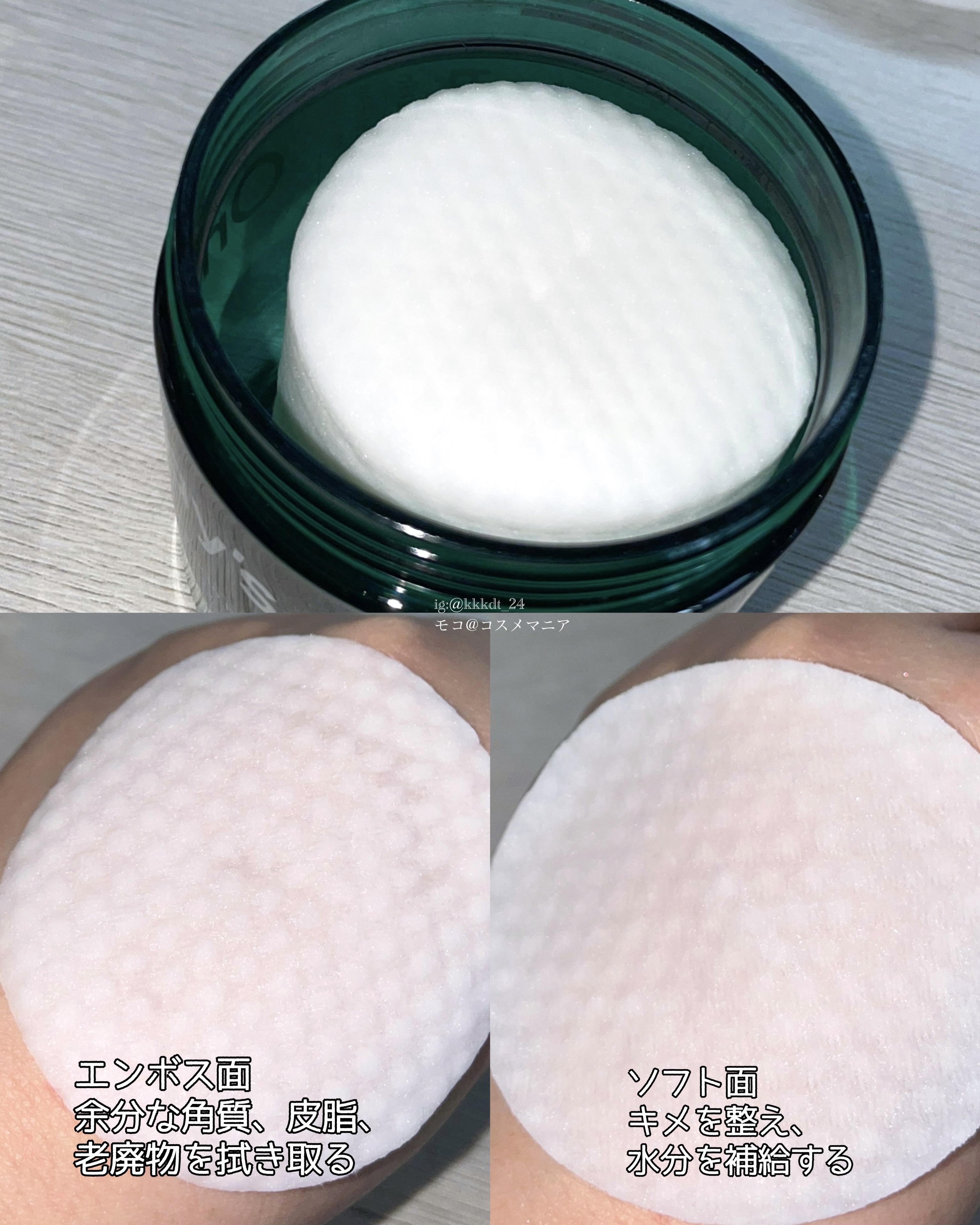 - 毛穴の角質や皮脂、メイク残りを拭き取りながら、CICA成分とたっぷり8種類のヒアルロン酸が肌角層のすみずみまでうるおいを届け肌鎮静と保湿ケアが一度に完了。 デイリー使いで乾燥による肌荒れを防ぎ、刺激を受けた乾燥肌のお悩みにおすすめです。 やさしくお肌を整える、拭き取りに最適なエンボス生地パッド採用!