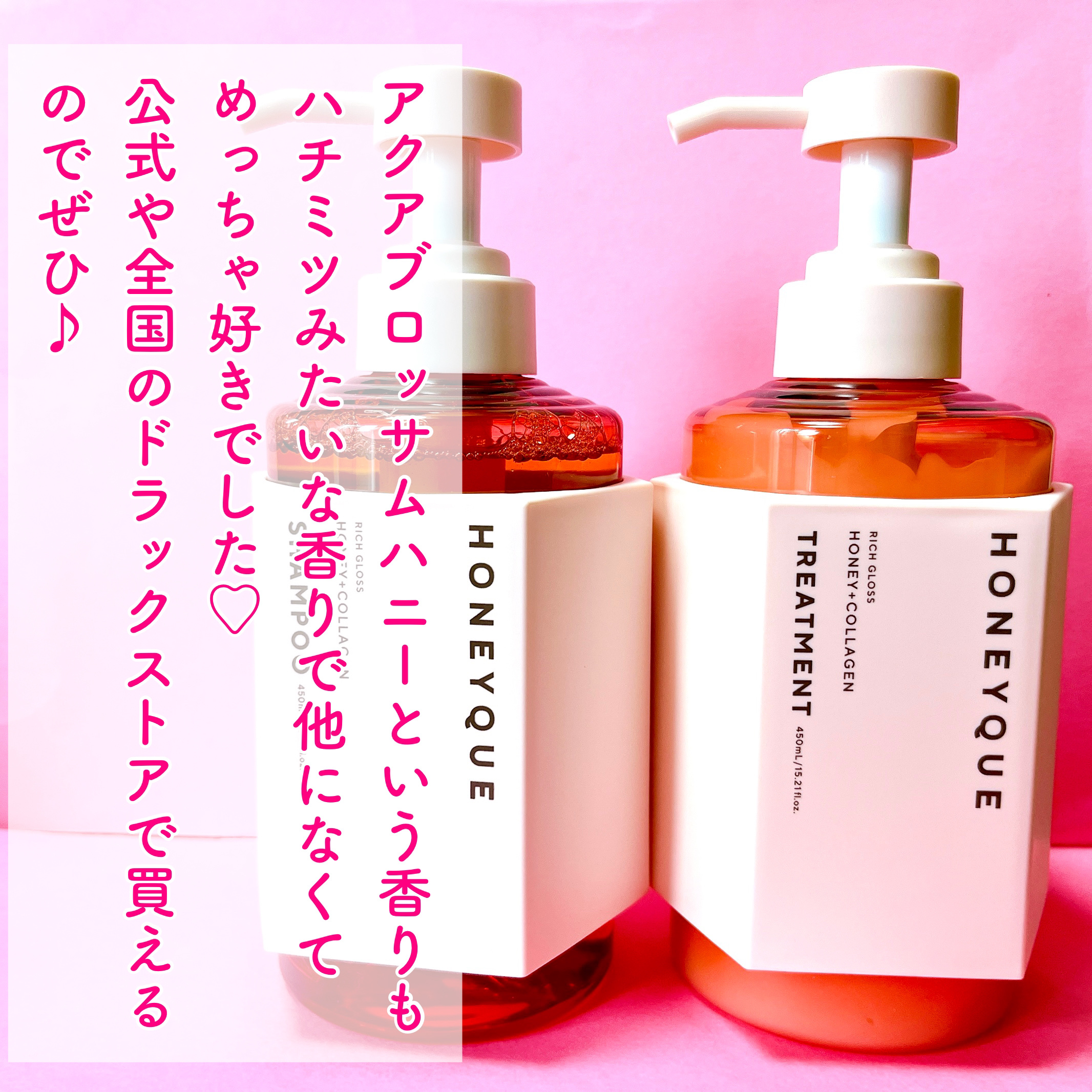 はちみつの力で毛先までしっとりまとまる髪に🍯 洗い上がりからつるつるとした感じがして、乾かして確信に変わりました🙂↕️ アクアブロッサムハニーの香り。 甘さの中に深い芯を感じる、奥行きのある香り😻 泡立ちがよくもちもちと きめ細やかな泡で洗えます。泡パックもできる◎