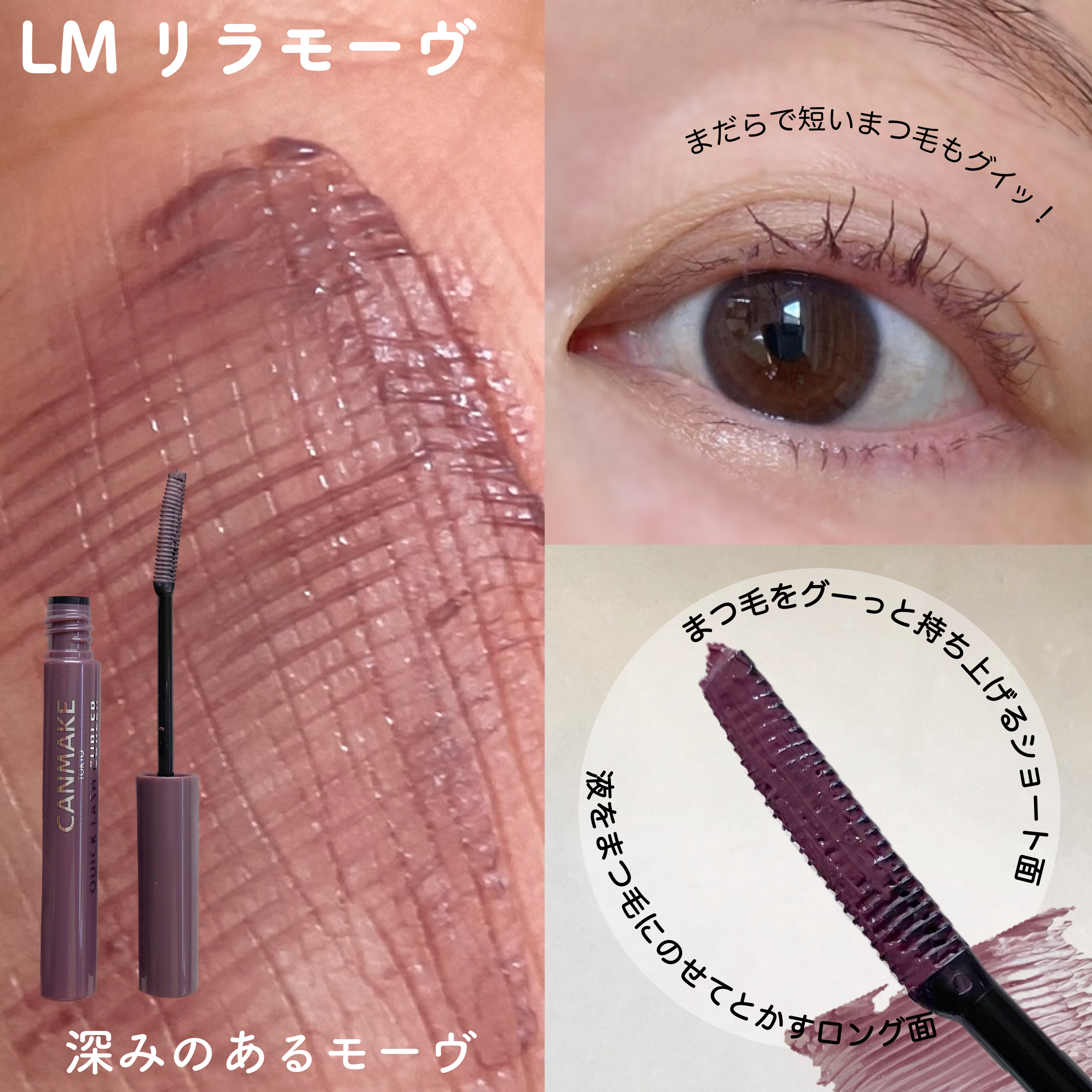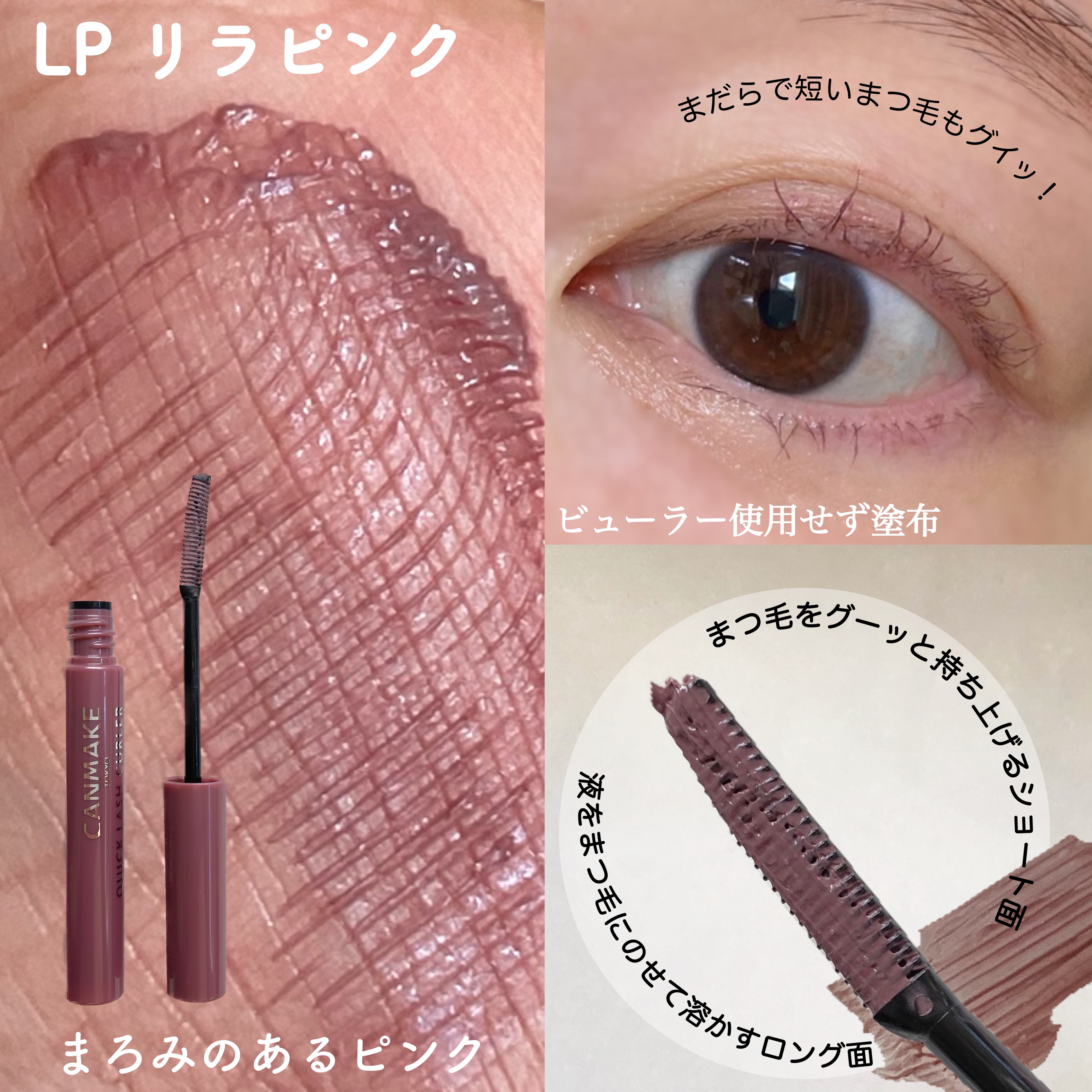 キャンメイククイックラッシュカーラーLPリラピンクアウトレットショップで購入。ざっくり270円くらい。くすみのあるパープル寄りピンクのマスカラ。秋メイクにはちょうど良いカラー♡これ1本でまつげカールキープ&アップ。「マスカラ下地」「トップコー...