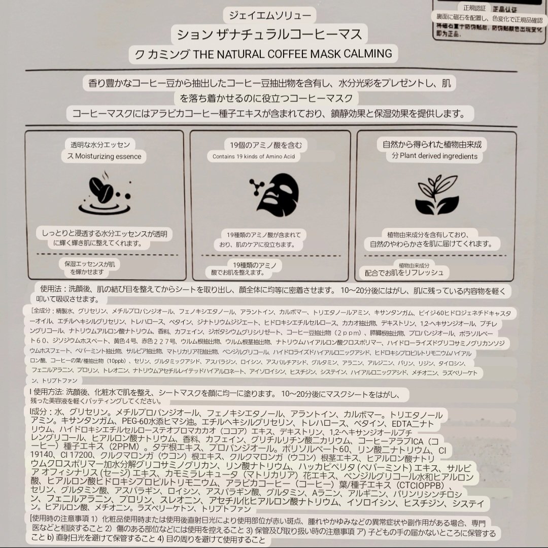 シートはかなり薄く、肌にピッタリ張り付きます。 香りはとても甘い香りで、コーヒーかと聞かれると違う気がしますが、私はかなり好みの香りでした。 使用した後は肌に水分が入ったようにふっくらして、滑らかになりました。