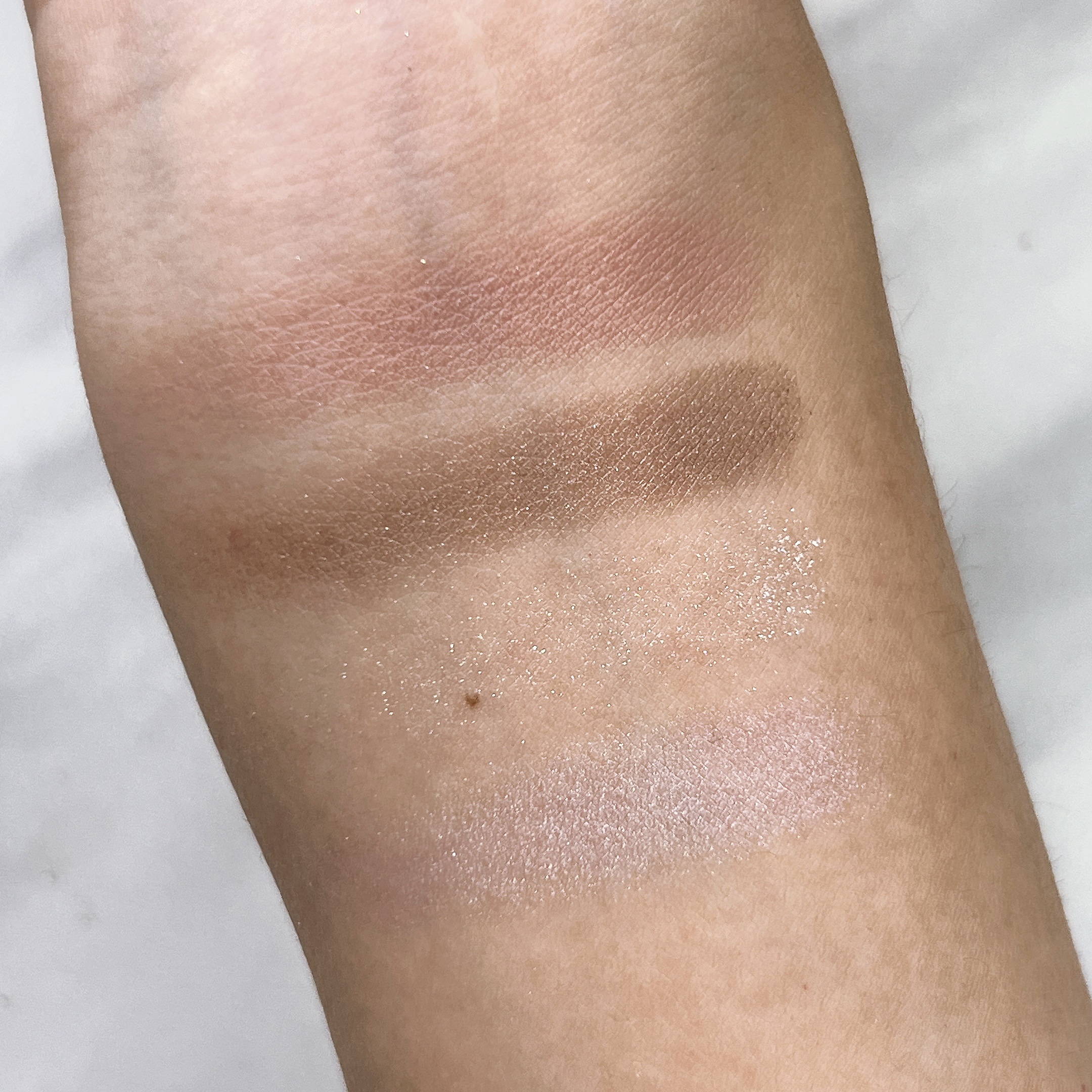 BR01ソフトブラウンニュートラルカラーのブラウンパレット陰影が出るカラーで馴染みが良いのに盛れる!オフィスメイクにもぴったりな落ち着いたカラーラメを足すと華やかになります✨ BR02アップルシナモンシナモンベージュに濃いめのオレンジカラーがとってもお洒落なカラーです。一気にこなれ感が出ます。こんなお洒落なカラーがコンビニで買えるのがすごい! PK01ローズフォグローズピンクカラー韓国アイドルのような可愛いらしい印象にみせてくれるピンクです💕 マット3色、ラメ1色のパレットしっとり粉質で発色がとっても良いです!グラデーションしやすい◎普通のアイパレットと変わらない質の良さ✨ ラメは柔らかい質感なので密着感があります。細かくぎっしりしたラメ感で濡れツヤキラキララメです💎 ミニパレットなのでポーチに入れてもかさばらない!使いきれる量なところが良い◎ 質感も良くて色味も可愛い!LAWSONに売っているので是非チェックしてみて下さい♡