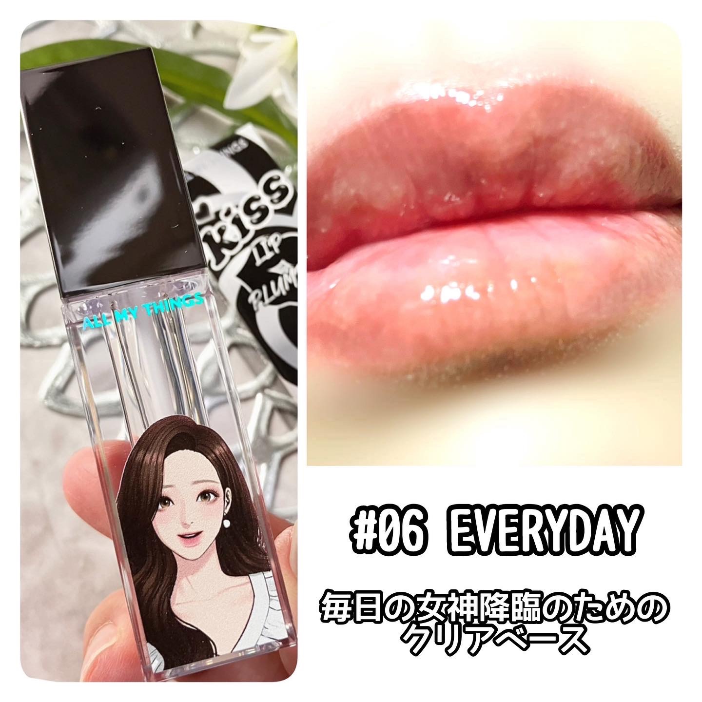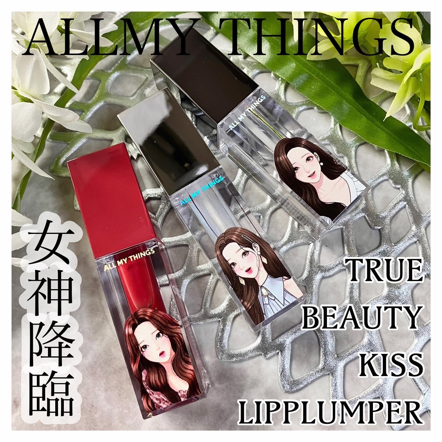 ALLMYTHINGSトゥルービューティーキスリッププランパー女神降臨のパッケージが可愛いプランパーしっとりとしたプランピング効果でまるで漫画みたいなぷっくりリップに🪄人気の既存6色に新色6色が加わった全12色展開⏬他のリップと組み合わせても...