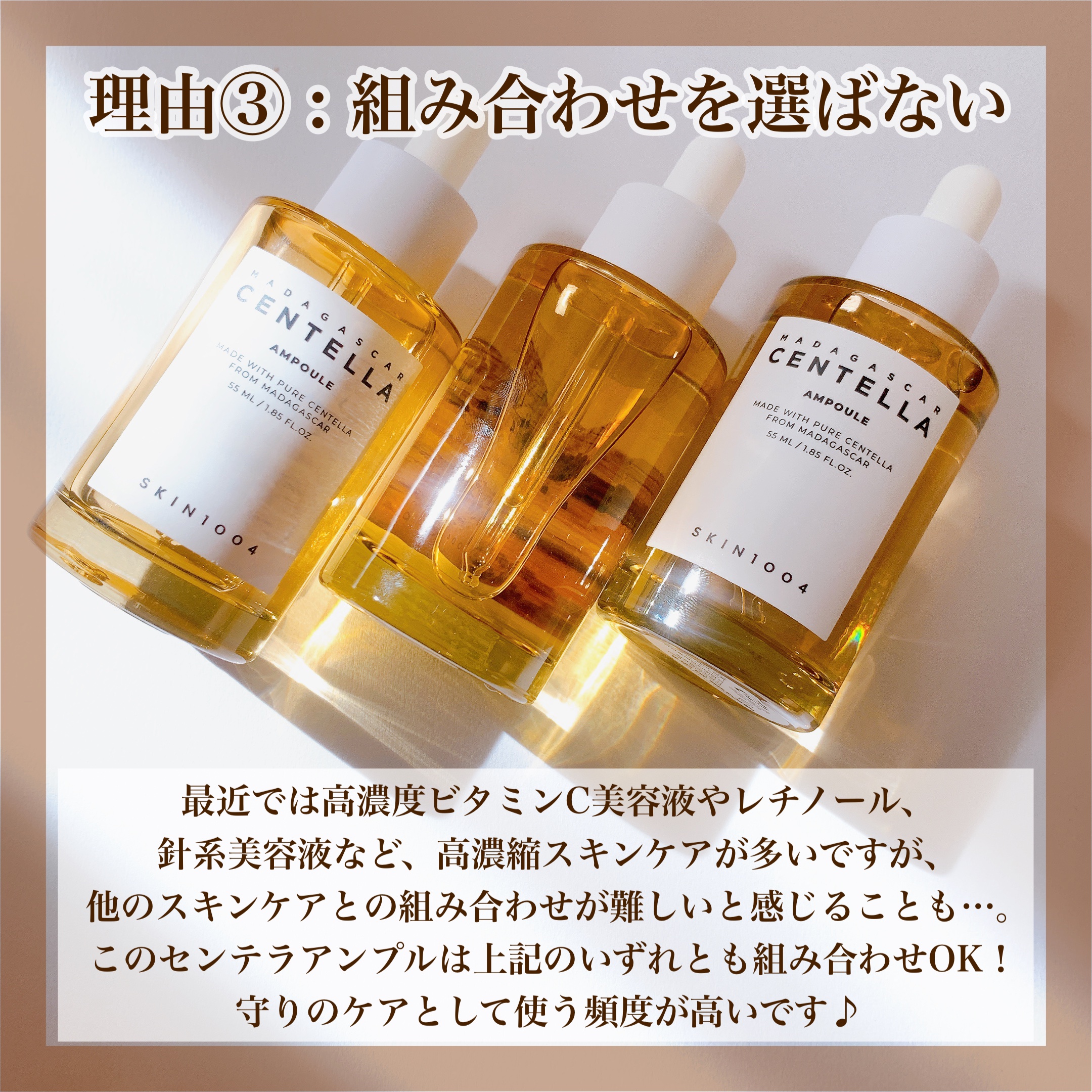 マダガスカルで育った高品質のツボクサエキス(センテラアジアチカ)を配合した鎮静や保湿・肌バリアに特化したアンプル 無香料なのも嬉しいポイントの1つ👍 直径7cmの大きめパッド くぼみがあるので目元に沿うようにパックも出来ちゃう優れもの