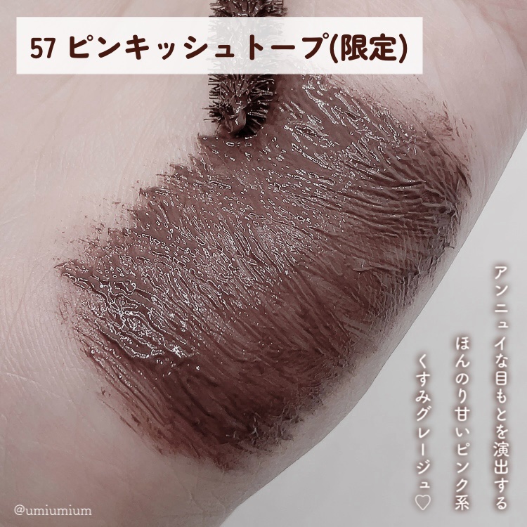チョコレートみたいに甘く仕上がるマスカラ❤︎ お湯+洗顔料オフで普段使いに💭 ウォータープルーフタイプなのにお湯+洗顔料でオフできちゃうマスカラです☺︎ 色味は落ち着いたピンクブラウン系 グレー系も入っているのでメイクを選ばず使いやすいのではないかと思いました❤︎