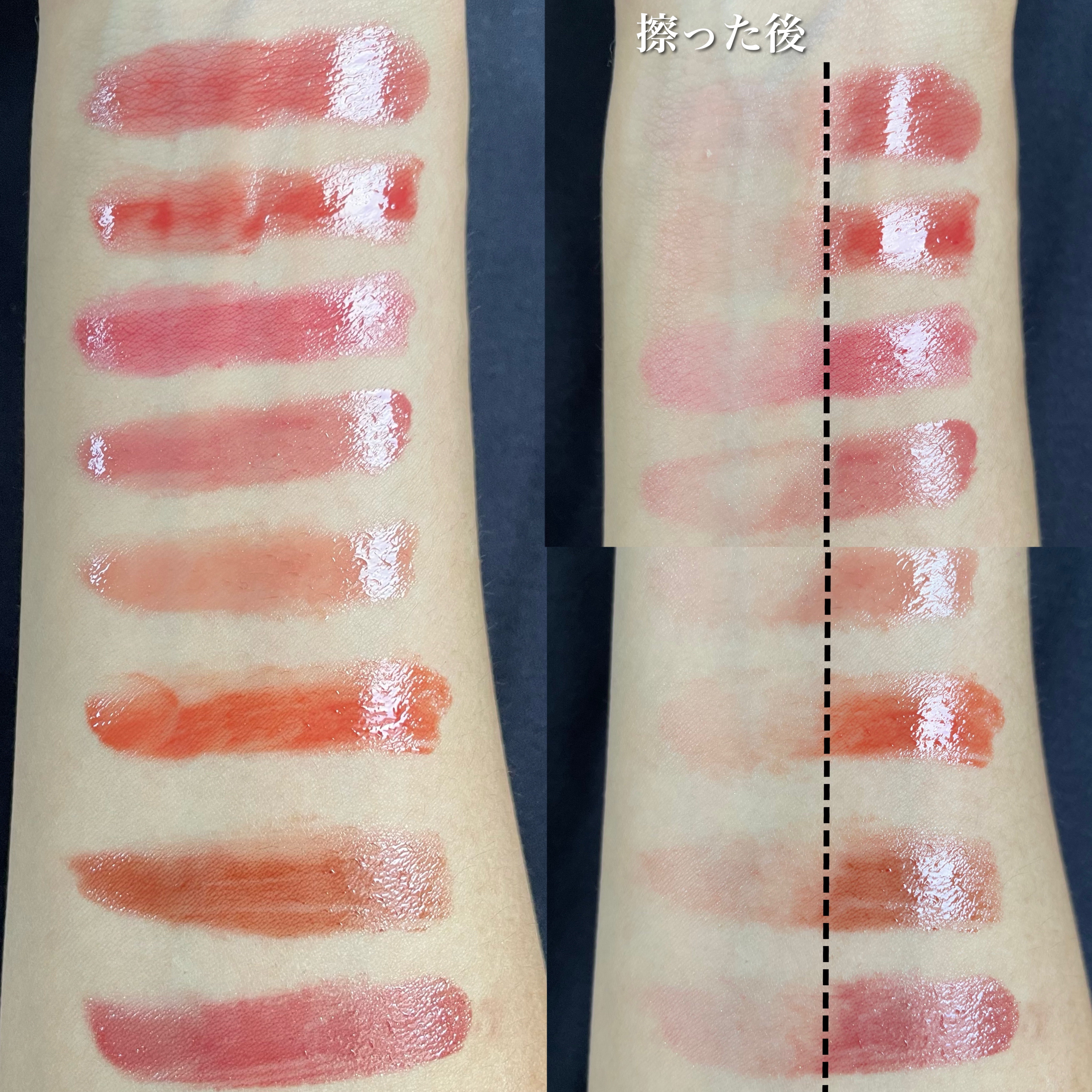 バームによる濡れツヤ感の中に、微細な多色ラメがザクザク入っており上品かつゴージャスな煌めきです✨ バームタイプなので若干ヌルッと感はありますが、密着力が高くペタつきはなし。 スティック状で唇の山や鼻筋など細かい部分へのコントロールがしやすいです◎ これから乾燥が気になってくる時期なので、Cゾーンや細かい部分に使用する機会が増えそうです😌 お値段も手頃で、多色ラメがたっぷりと入ってとても可愛いので…こちらは買っておいて良かったなと大満足です💕 暖色系ラメ、寒色系ラメと分かれてますがベースカラーがないので、肌色ではなくメイクに合わせて使い分けが出来そうです。