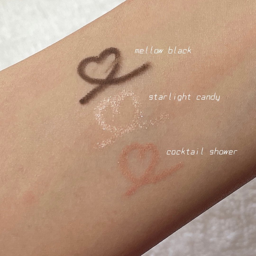落ちにくく、滲みにくいです✏️密着も良く、するする描きやすかったです💗 ミルクブラウンは陰影にも⭕️ムーンライトオーロラ、スターライト綿菓子は涙袋にも可愛いです🥰 気になる方は是非チェックしてみてね🐰