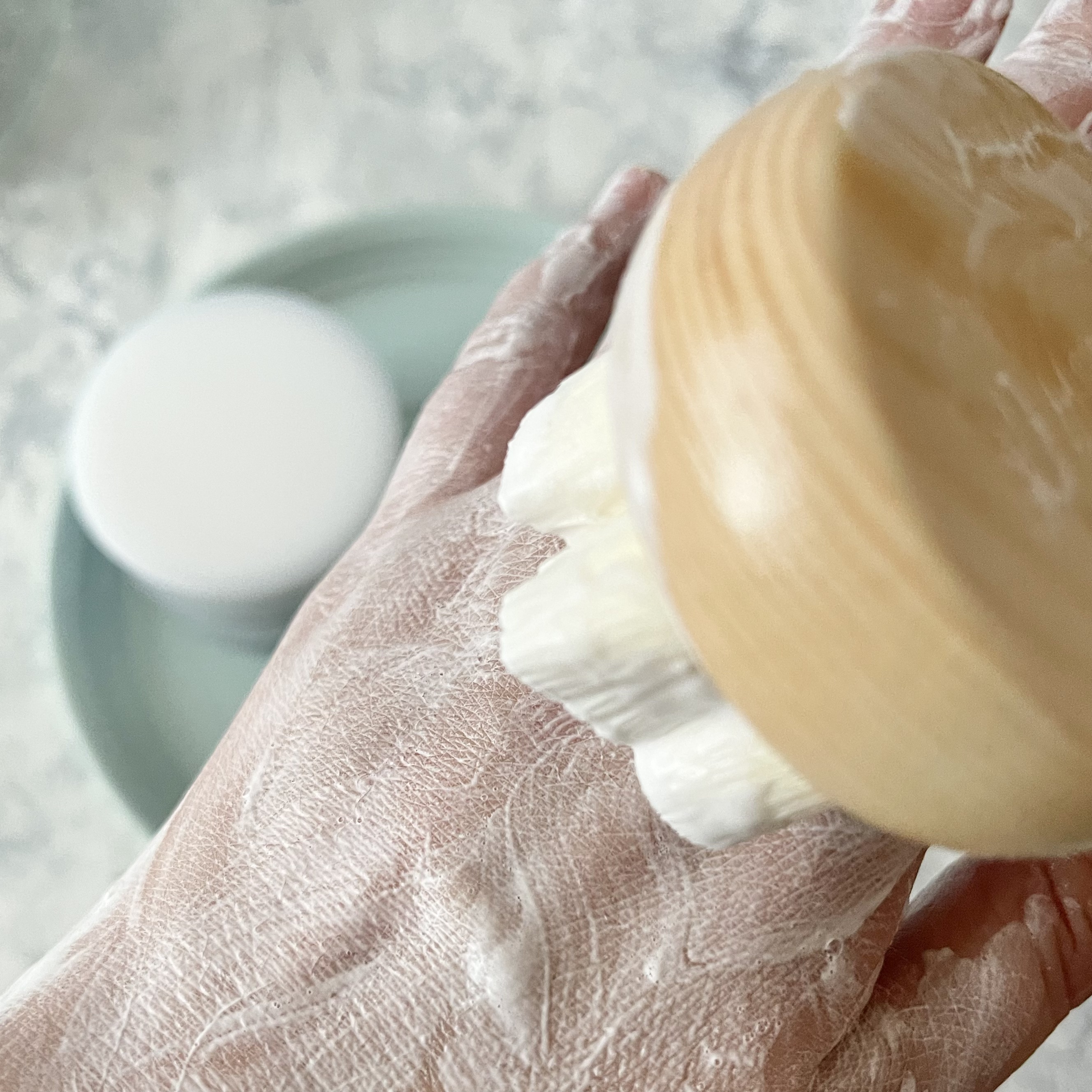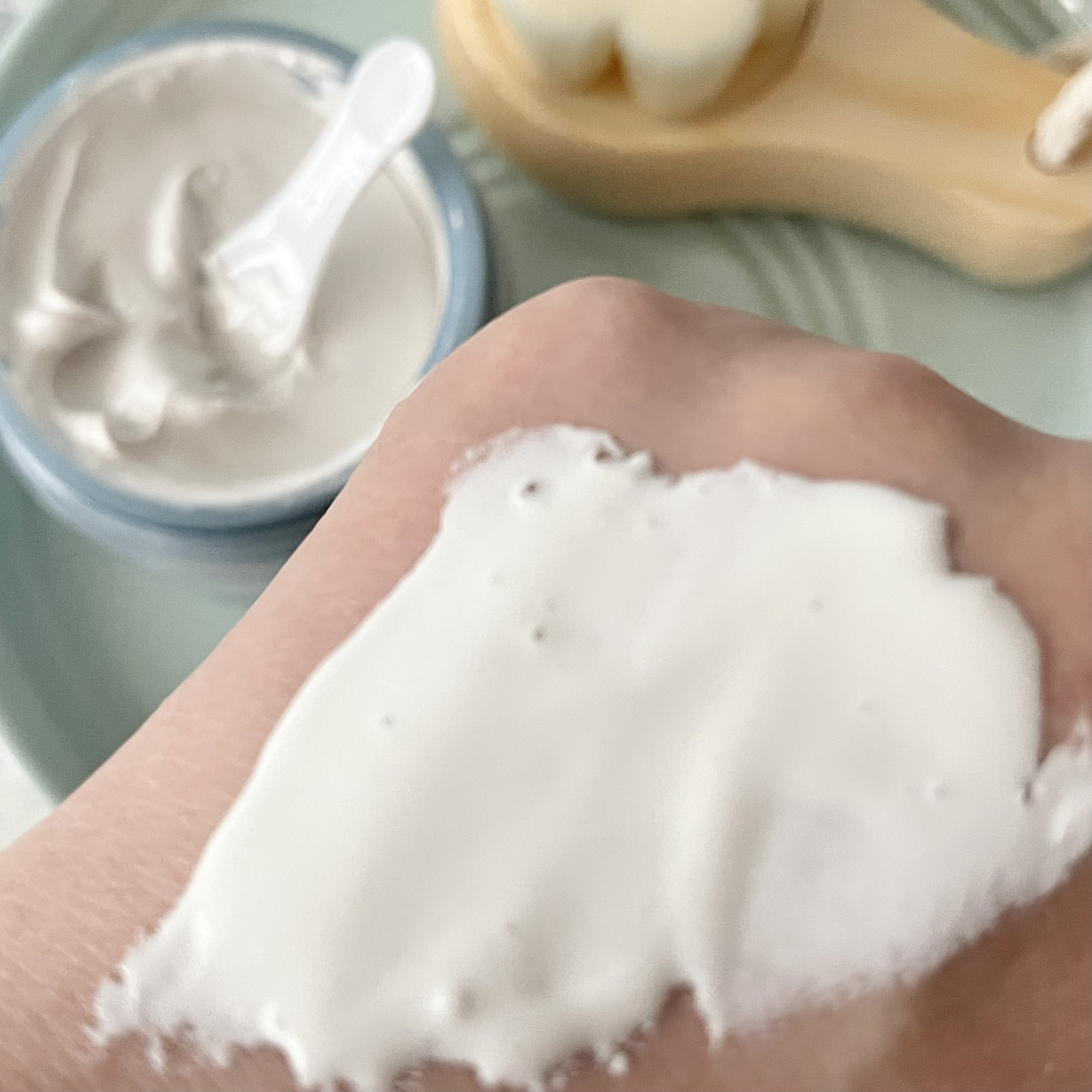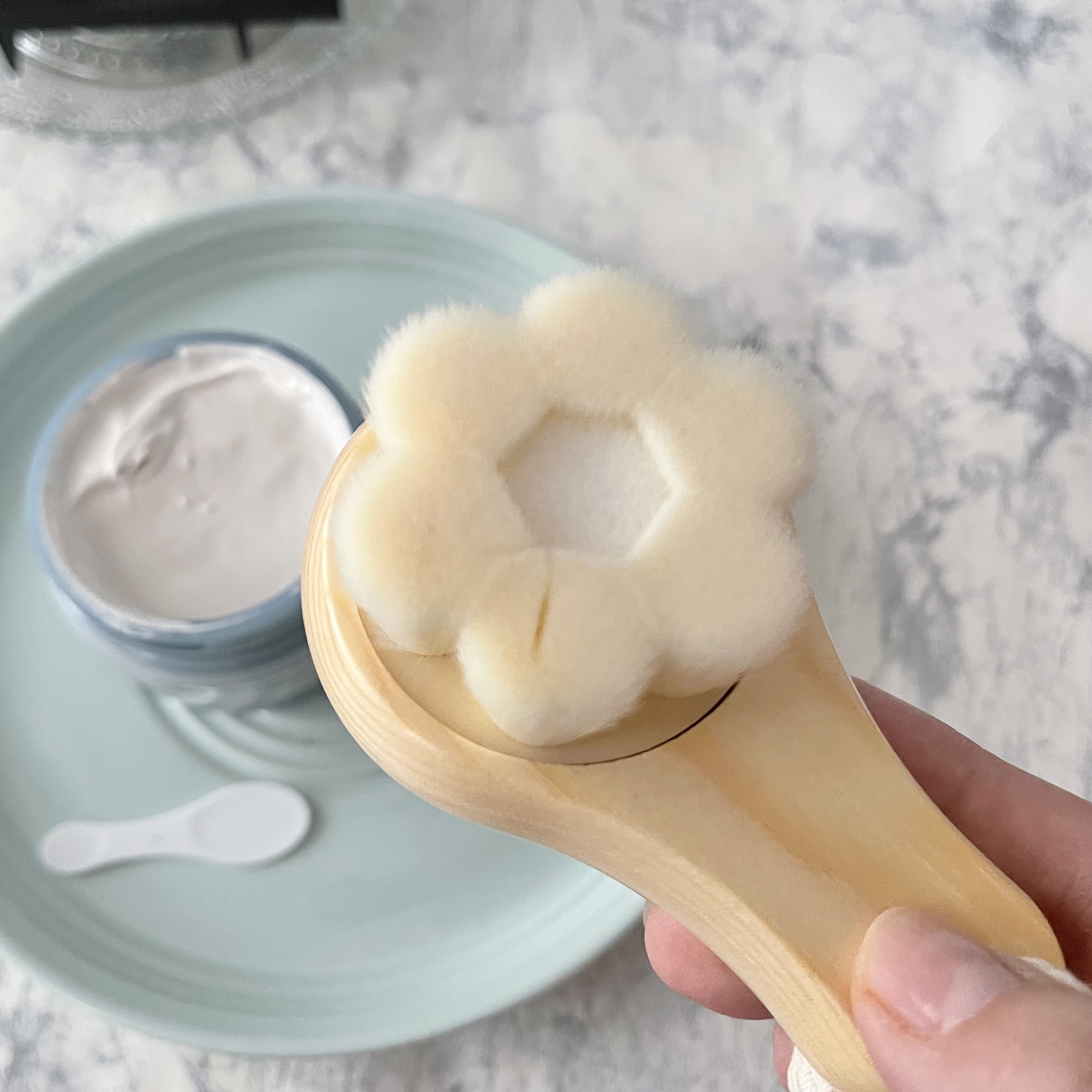 医薬部外品ブライトニング洗顔パック 天然ミネラルのシリカやグリチルリチン酸ジカリウム配合 合成着色料、香料、防腐剤フリーの無添加 生クリームのように、ねっとりとお肌に密着 10秒パック後に洗顔ブラシでくるくるして馴染ませたらOFF ふわふわの洗顔ブラシ チークブラシのようにやわらかく 毛の密度もあり肌にあてると気持ちいい✨️