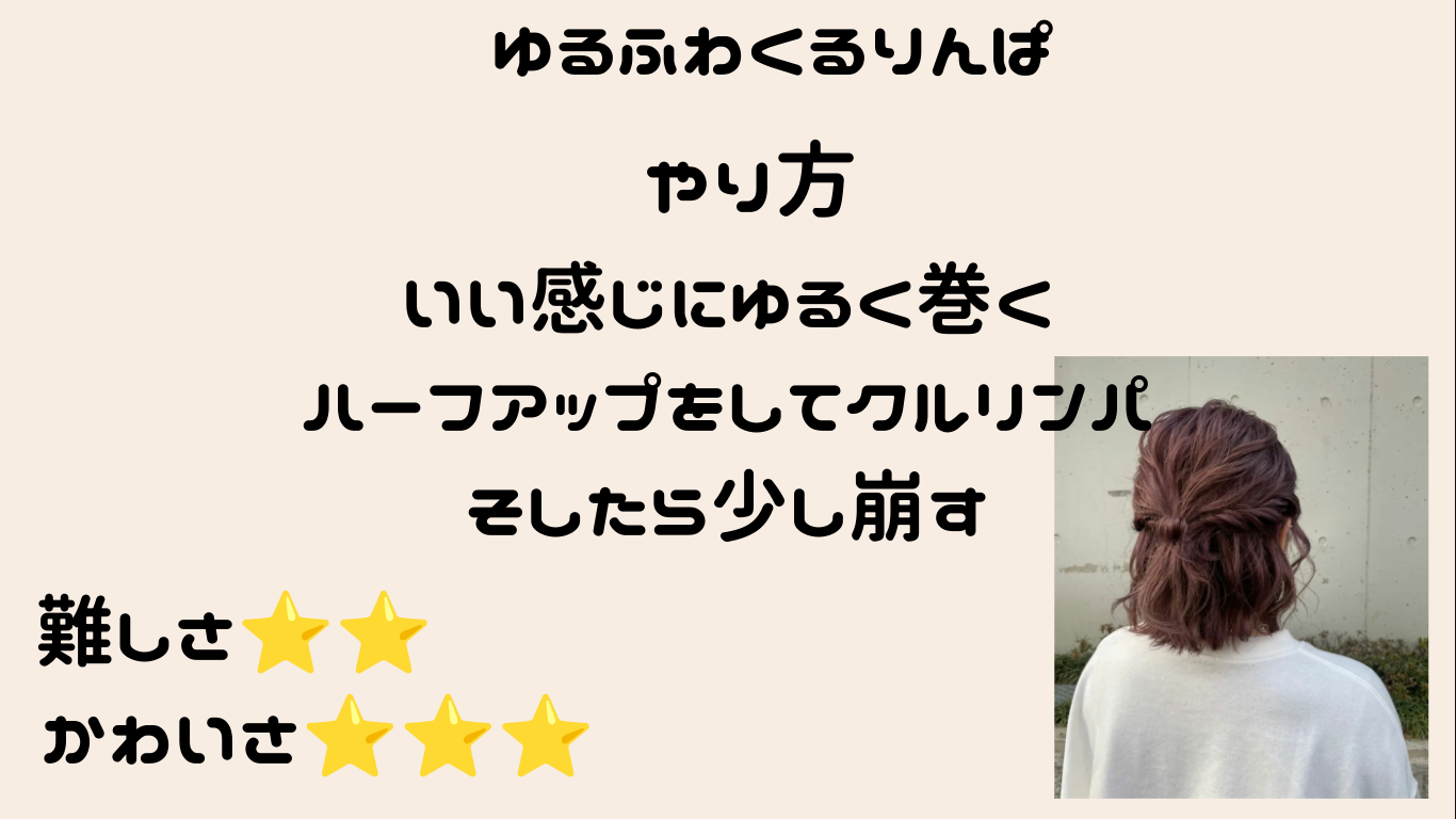 この髪型はボブでもできるしとにかくほんとに簡単なのにめっちゃかわいいのが特徴です! ですがすぐ崩れやすいのが特徴です😢 ケープの3Dエクストラキープを軽く全体にふる 結んだ毛束のところにヘアオイルをつけてツルッさせる