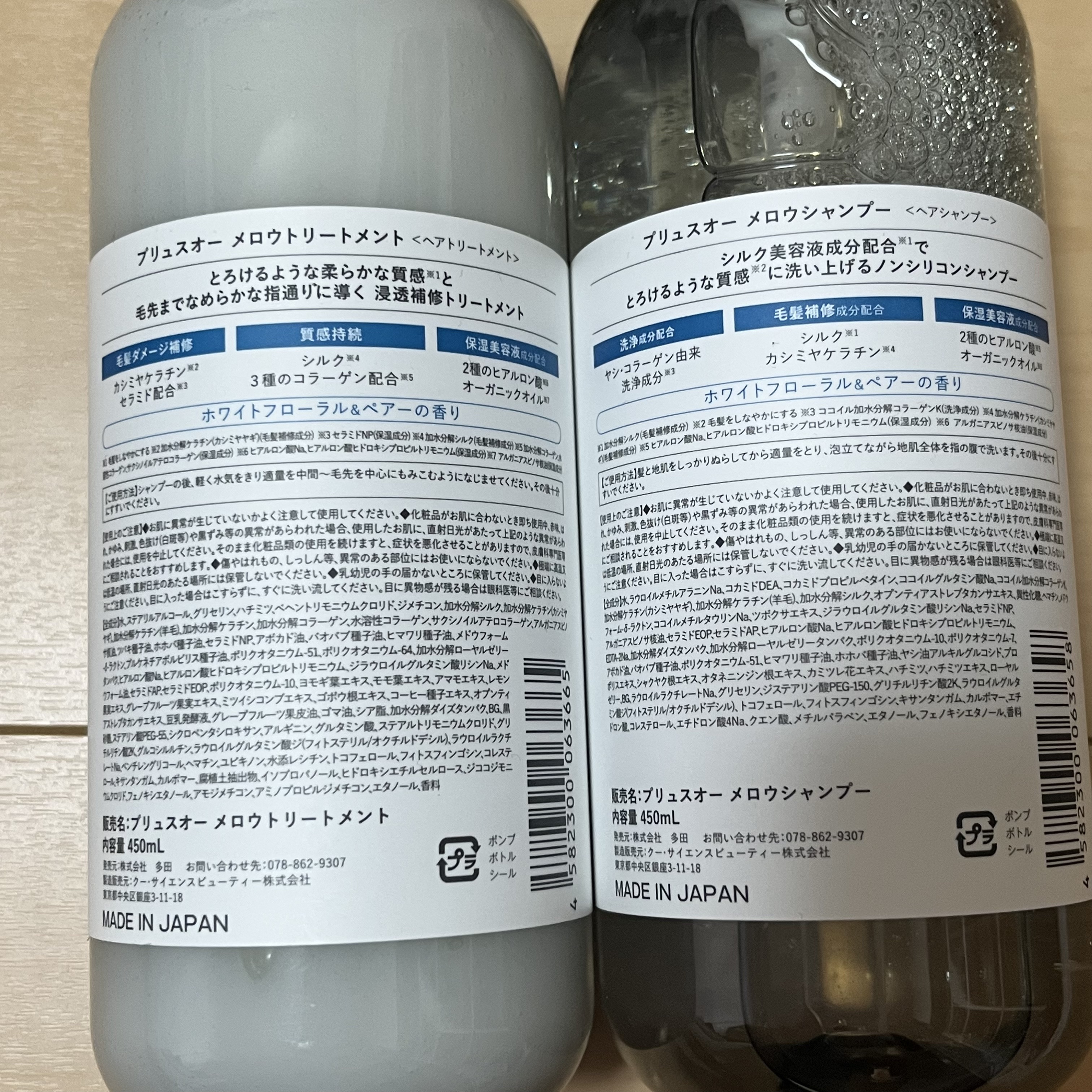 pluseau メロウシャンプー/メロウトリートメント トライアルとろける質感と感動の指通り。補修美容でさらツヤ髪に。ホワイトフローラル&ペアーの香りを採用したシャンプー、トリートメント●感想さらっとしたシャンプーで、泡立ち良かったです。トリ...