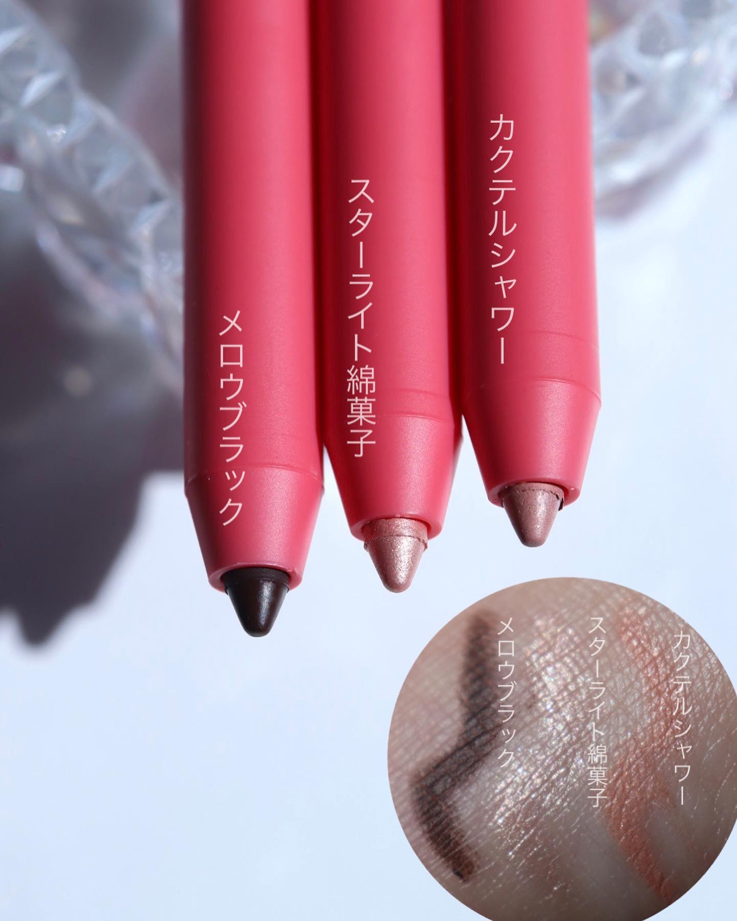 柔らかくなめらかな描き心地でスルスル描けて擦っても全然ヨレなくてぴたっと密着してくれます✨ ミルクブラウンをアイホール全体に塗ってメロウブラックをアイライナーにムーンライトオーロラを涙袋にメイクしてみました! 他のカラーもかわいくて豊富なのでぜひチェックしてみてください✔