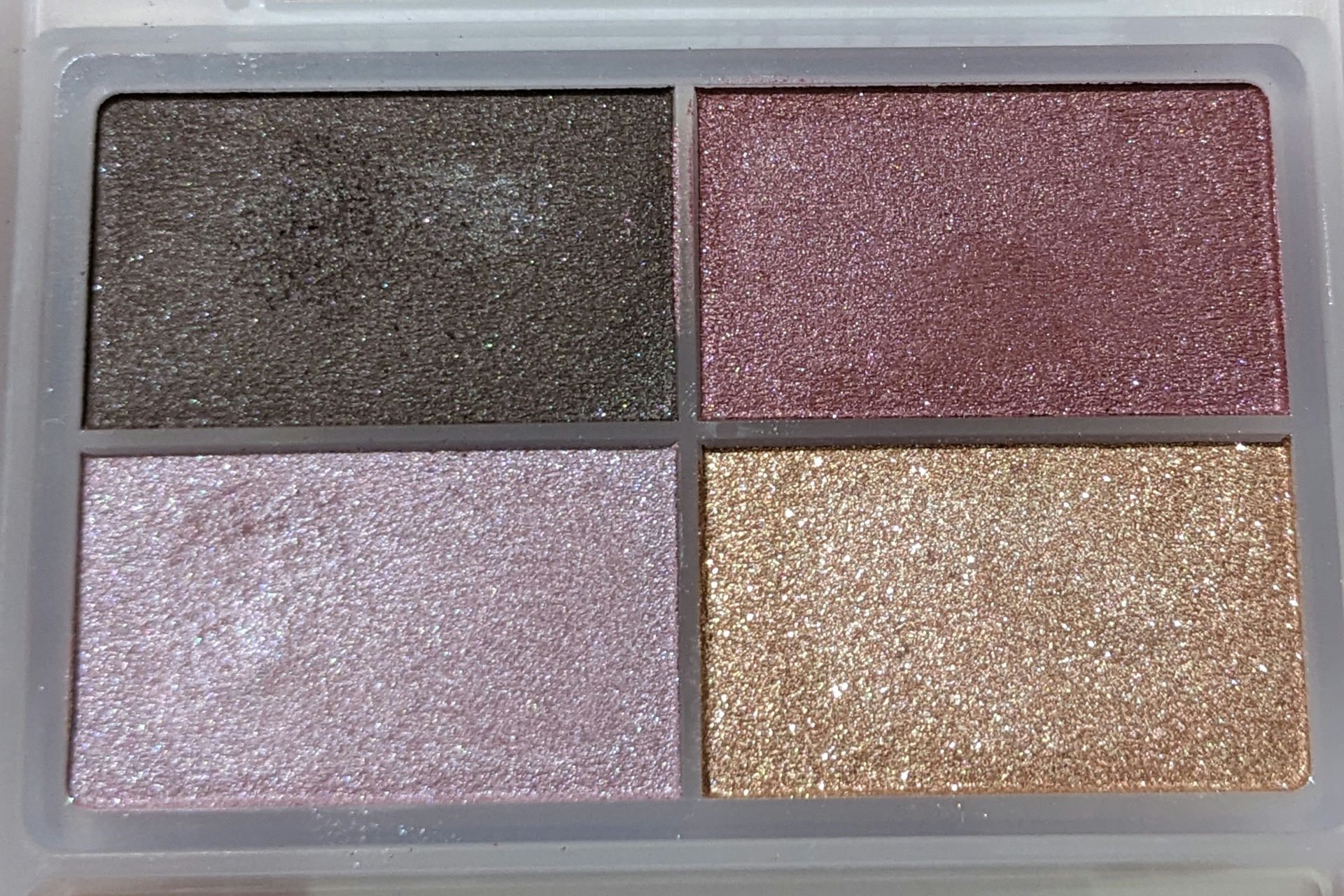 - シェードカラー・ミディアムカラー・ニュアンスカラー・スパークルカラーの4色が1つにまとまったメイクパレットです。 アイシャドウだけでなく、アイブロウやシェーディングとしても使えるカラーが入っているので、眉から目元まで、パレット1つでアイメイクが完成します。 カラーの組み合わせ次第でアレンジが広がり、様々なシーンに合わせたアイメイクを自在に楽しめます。 高密度ウレタン素材のチップ付きです。