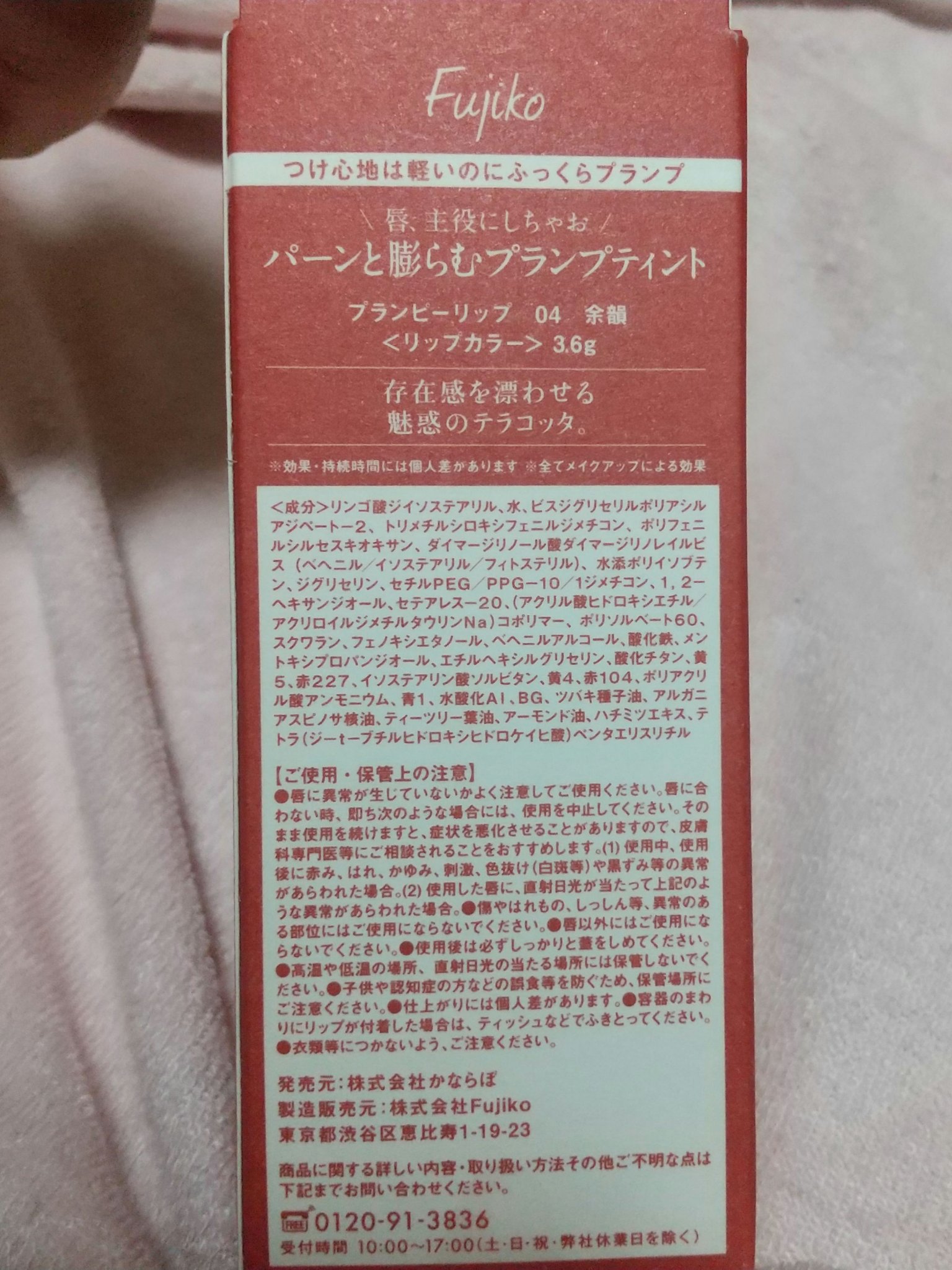 - フジコの新リップは、重ねるほどにパーンと膨んでみえるプランプティント*1。 ぷっくりと存在感のあるリップメイクで唇を主役に。 <プランプ成分(清涼成分)> "メントキシプロパンジオール”採用。 血色感、ボリューム感、クーリング感を演出します。 <オイルウォーターティント処方> 軽やかなオイルが唇に均一に伸び広がり、 FIXING。 時間が経ってもボリューム感と光沢感を演出。 しかもティントだから“落ちにくい”(*2)。 <5種の美容保湿成分配合> アルガンオイル・ツバキ種子油・アーモンド油 ティーツリー葉油・ハチミツエキス *1全てメイクアップ効果 *2効果・効能には個人差があります。