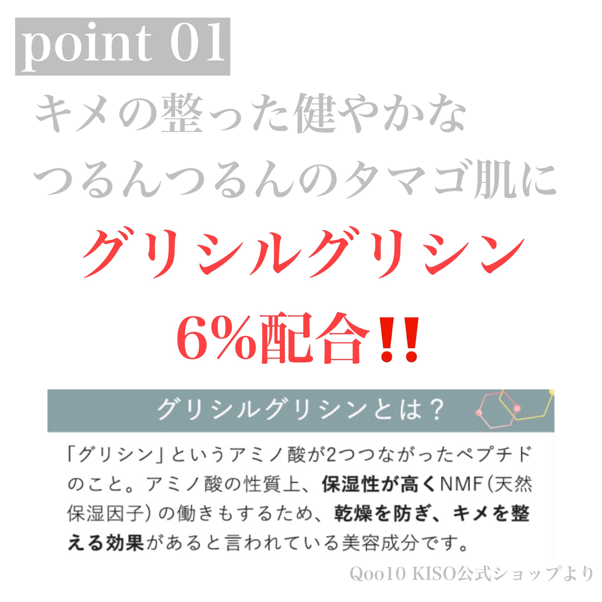 - グリシルグリシン6%高配合美容水。さっぱりした使用感で浸透力*に優れ、気になるお肌悩みを優しく保護。アミノ酸特有の保湿力も持ち、お肌に潤いと輝きを与えます。*角質層まで パッケージリニューアル