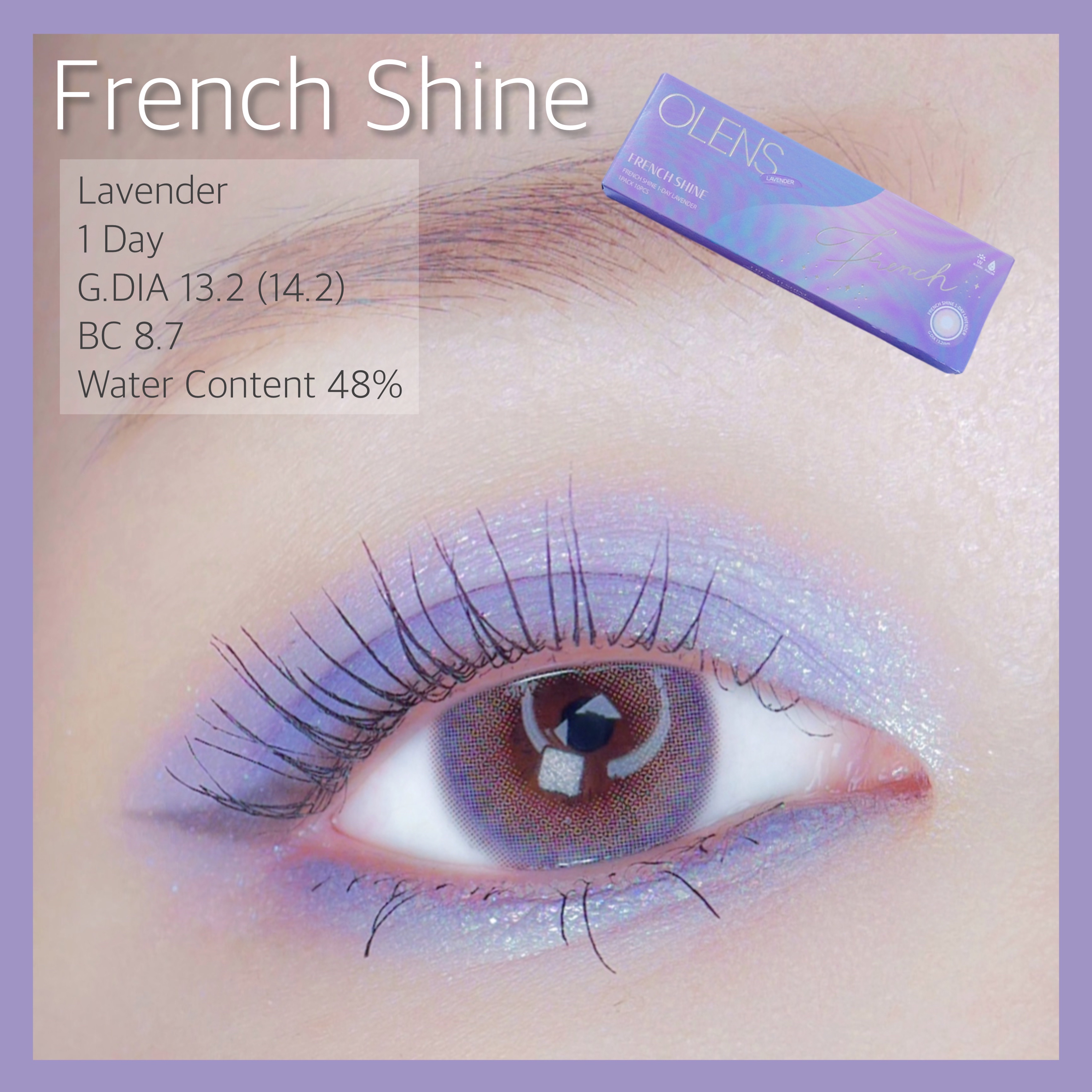- ■OLENS French Shine(オーレンズフレンチシャイン) 韓国カラコン業界の話題のブランド『OLENS(オーレンズ)』の日本正式承認商品シリーズ。世界中から注目を浴びるグループ「NewJeans (ニュージーンズ)」がイメージモデル。そんなOLENSの新シリーズで、華やかに輝きロマンチックな瞳を演出する『FRENCH SHINE(フレンチシャイン)』が、モアコンタクトに新登場! ナチュラルでほのかに甘いゴールドベースのパステルカラーが瞳にほんのり溶け込むように馴染み、やわらかな輝きを生み出します。 着色直径は13.2mmと裸眼に馴染みやすい4色展開で、煌びやかながらもどこかノスタルジックであたたかな瞳を演出します。 ■使い方 コンタクトレンズは高度管理医療機器です。必ず眼科医の処方に従って購入してください。 ■使用上の留意事項 コンタクトレンズは高度管理医療機器です。眼科医の指導に従い装用期間を厳守し、正しくお使いください。眼の定期検査を必ず受けてください。添付文書を必ず読み、取扱方法、装用時間を守って正しくお使いください。少しでも異常を感じたら、直ちに眼科医の検査を受けてください。