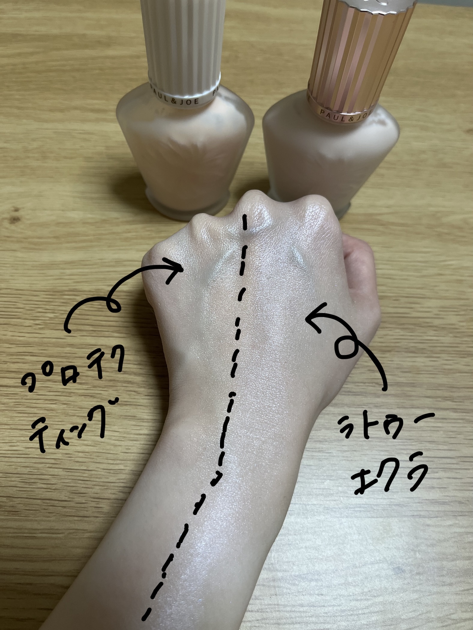 ラベンダーパール効果で、白っぽいツヤが出ます。 ラトゥー エクラ ファンデーション プライマー Nの方が光に照らすと若干白くて透明感のある仕上がり。 ブルベの方や、透明感やメリハリを求める方はラトゥー エクラ ファンデーション プライマー Nがいいかな?