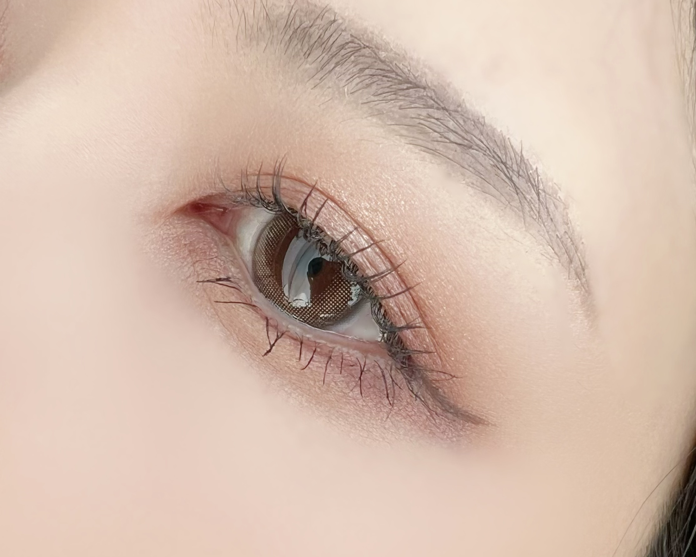 私の目では、裸眼に馴染みすぎて付けているのか付けていないのかほぼわからない状態になりました😢 採光の良い場所で撮ると多少は茶色っぽいかな?と言う感じがなくはないですが、デカ目効果だったり色の変化だったりは、私はまったく感じられませんでした。 ただ一つ、めちゃくちゃ良かったのは付け心地です。これは本当に良かった。 めちゃくちゃナチュラルなので、バレたくないけどカラコンは付けたい!と言う方には良いのかなあと思いました。