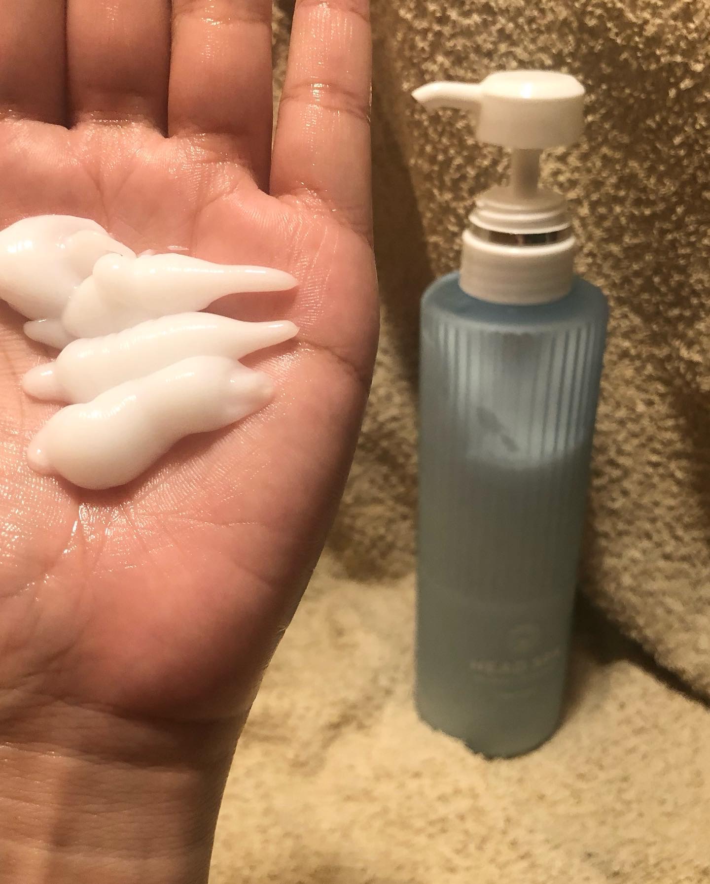 ヘッドスパ帰りのような仕上がりを提供するプレミアムなh&sのシリーズ。 スパリセット処方が地肌と髪のすみずみまで浸透し、毛穴の奥の皮脂や汚れをすっきりやさしく洗い流してくれるそう。 爽やかな水色のボトルが可愛い🩵 シャンプーはびよーんととろみのあるテクスチャー。