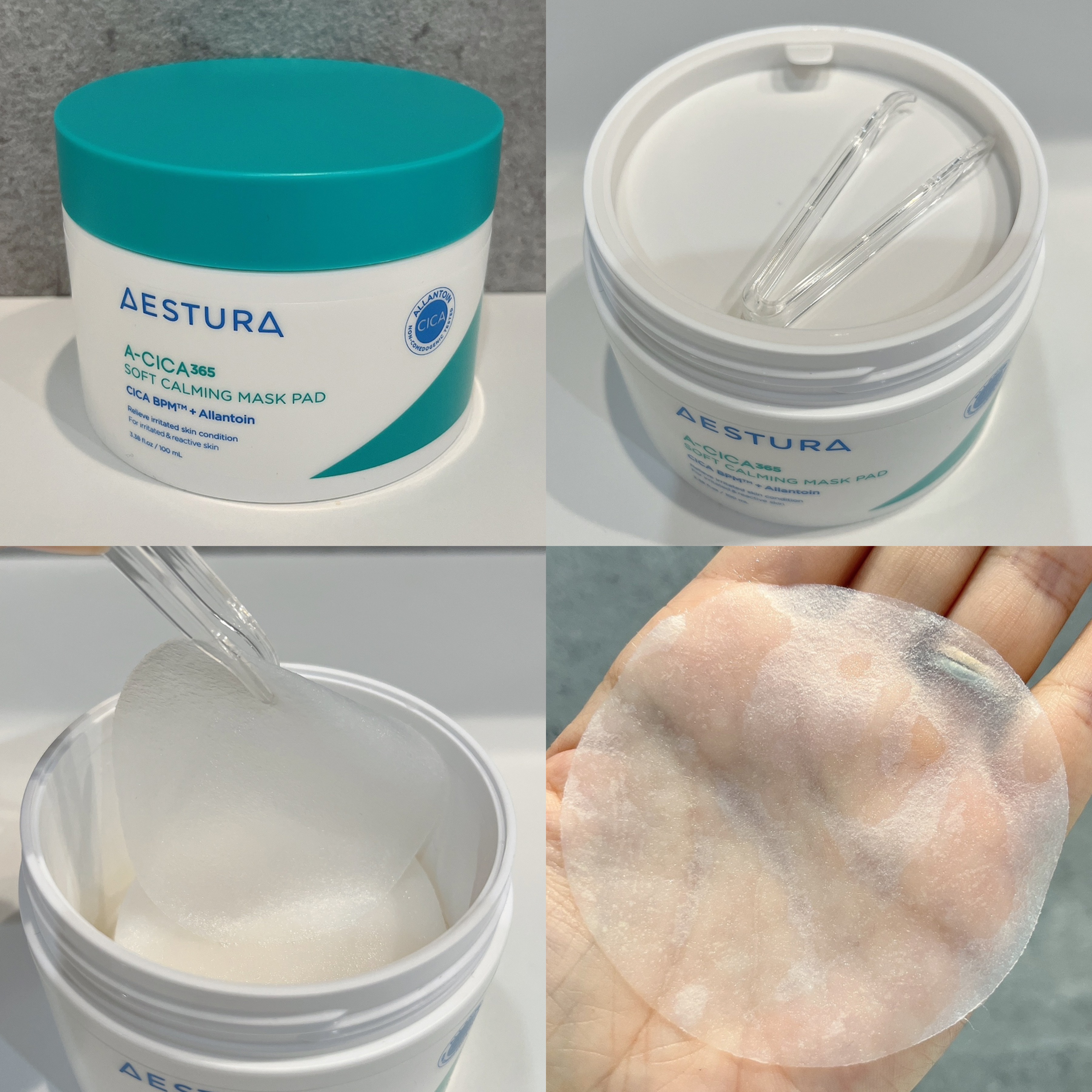 AESTURAエイシカ365マイクロセラム/クイックマスクパッド肌の鎮静、保湿、バリア機能のサポートに特化した2アイテム!セラムは乾燥によるくすみや肌荒れをケアし、「瞬間処方セラム」と呼ばれるほど角質層への浸透力が高いそう。軽いテクスチャーで...