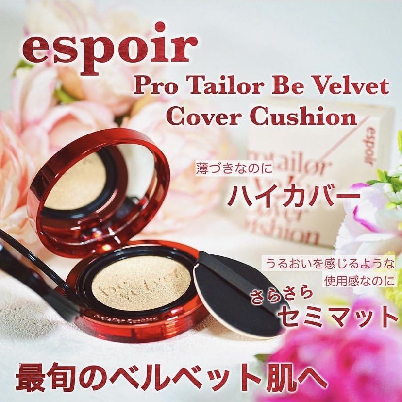 【espoir/ビーベルベットカバークッション】LIPS様を通していただきました🎁ベルベットのようにふわりとしたマットテクスチャーのクッションファンデです🫶🏻普段ファンデーションは標準〜少し明るめカラーを使用しているのですが、こちらのアイボリ...