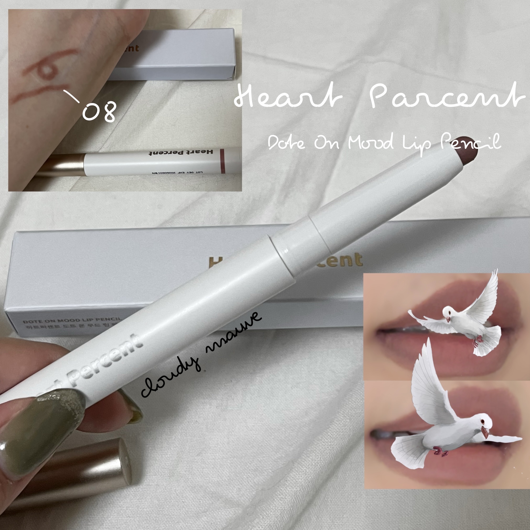 【PR】HeartPercentの《DOTEONMOODLIPPENCIL》×《OneWayGlowyTint》でつくる、ムードのある“ニュートラルヌーディリップ”🤎グレイッシュな#08CloudyMauveや#21RosyLipsでふんわり...