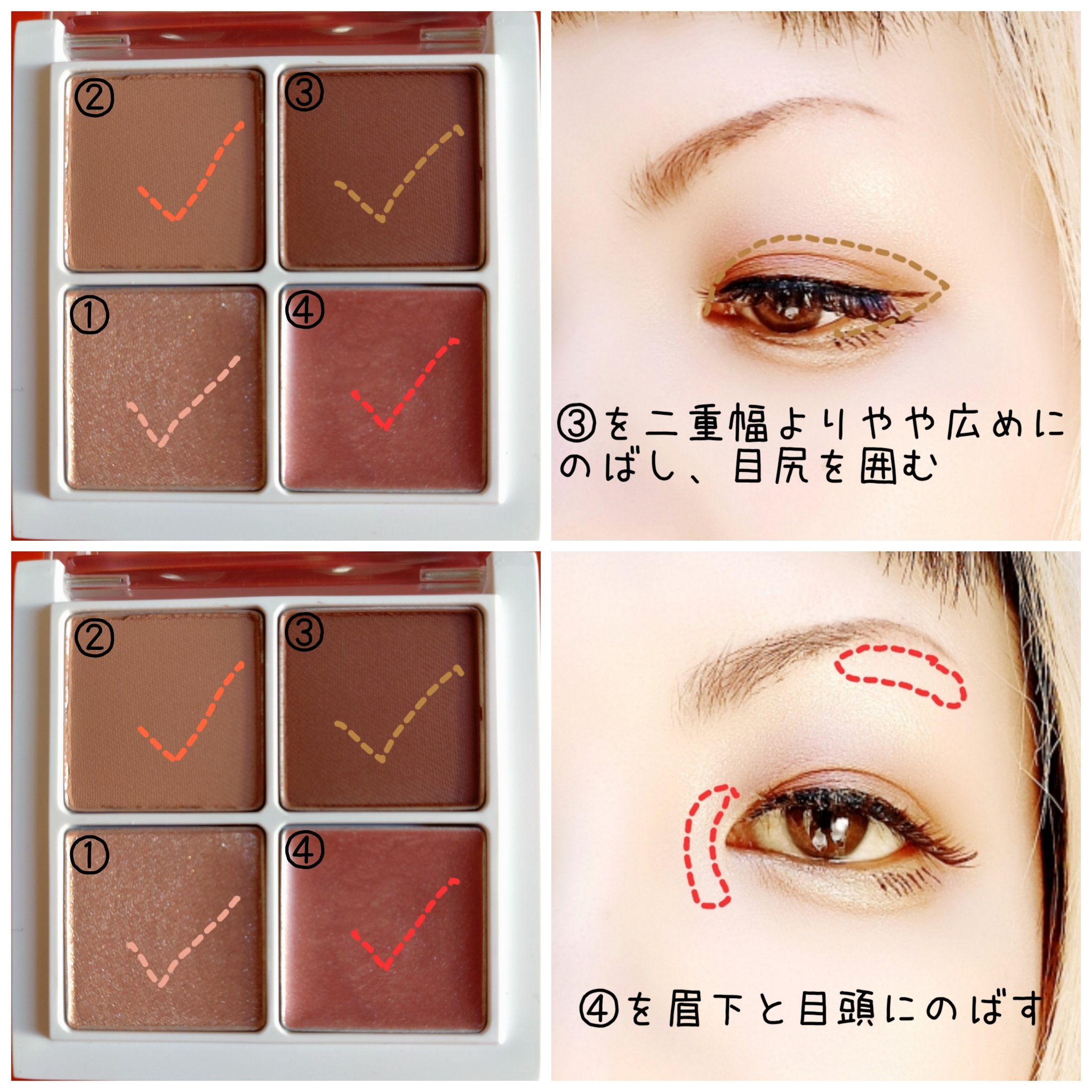 プチプラのクオリティじゃないっ!! 発売前からチェックしていたけれど、ここまで可愛いとは…😆 絶妙カラーで目もとのくすみを飛ばして*明るい印象に🩷 横割りグラデーションでメイクし、立体感をより出したかったので最後に1番左のカラーを上まぶたの真ん中と涙袋にのせています🙆 肌馴染みも良くて粉飛びも感じにくかったです💕 ブラウンの方も店頭に出てたら買おうかな💓