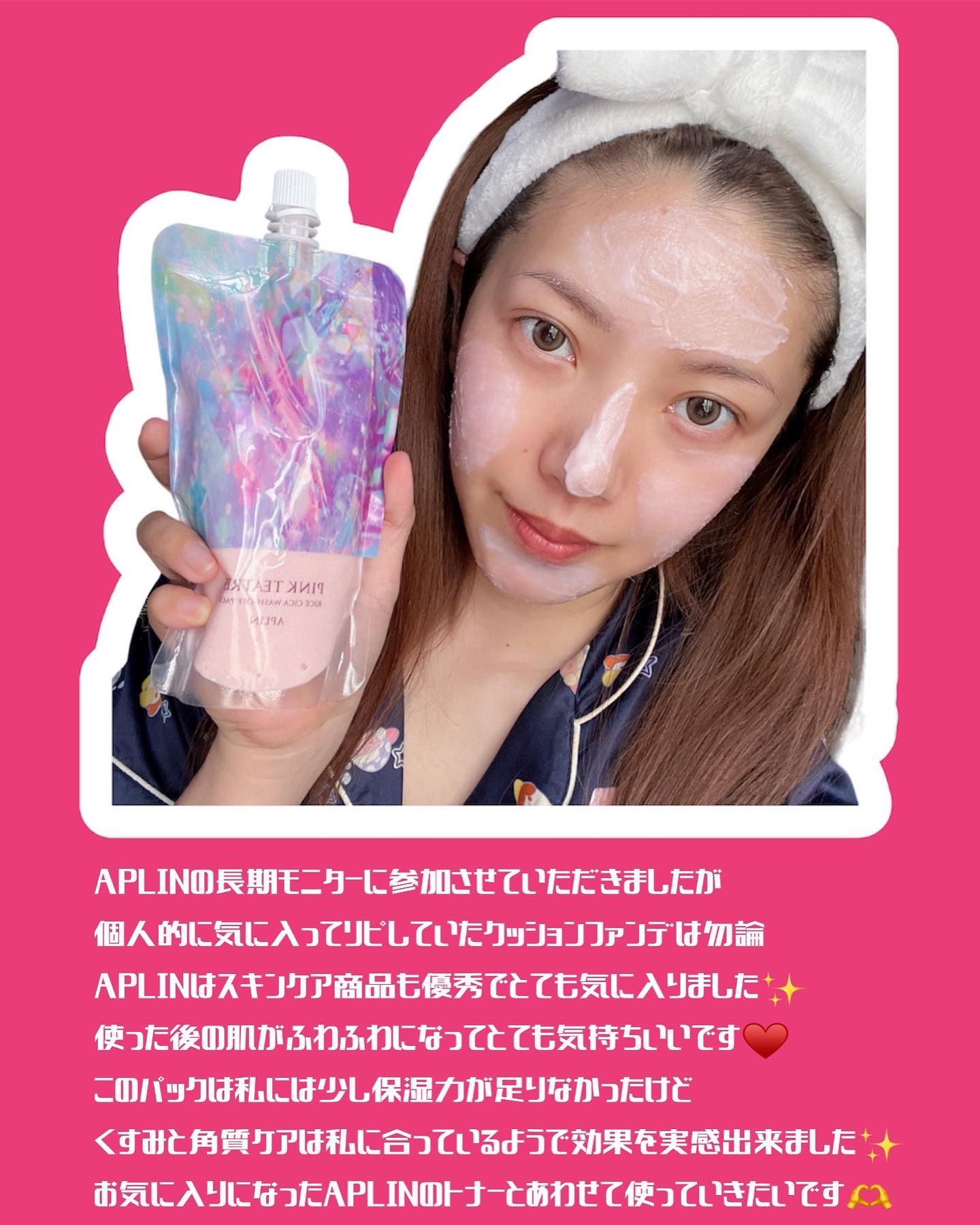 今日のパックは大好きアプリンの💕APLINピンクティーツリーライスシカウォッシュオフパックザラつく古い角質をケアしてパッと明るくくすみOFFしてくれる。クリームタイプでピンクティーツリーシリーズ使ってる人は分かると思うけどあのいい香りをまとえ...