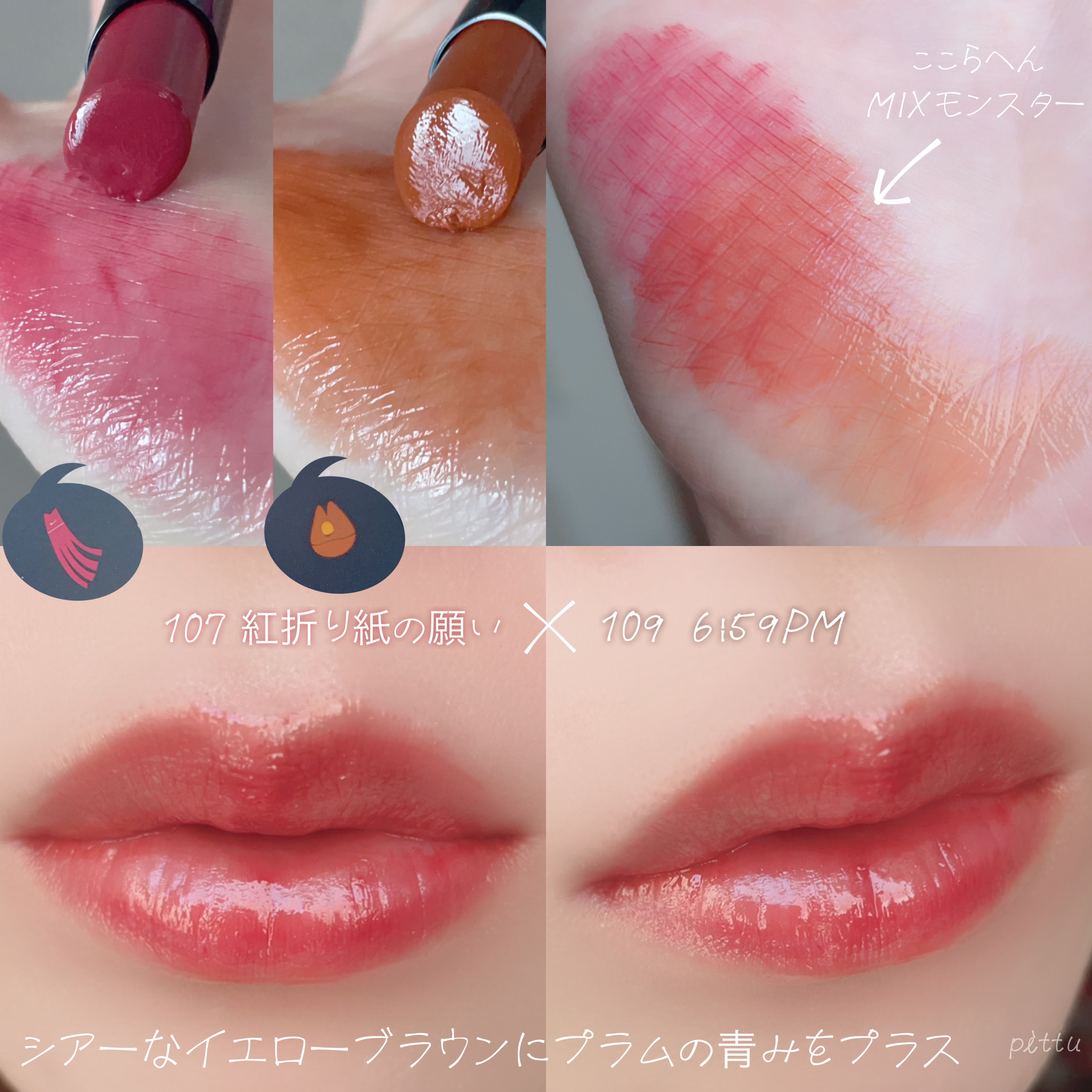 天の川のように輝くプラムピンク レッド系という色味だからか手持ちのマイリップモンスターの中でも高発色 程よい青みのあるレッド マットではなくシアー リップモンスターならではのツヤ感があるので レッドリップが苦手でものせる量によって使いやすくなる印象