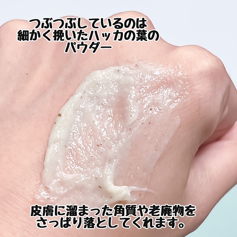 - ココナッツ由来の植物性界面活性剤と細かいハッカ葉パウダー*が配合された 濃密な泡ですっきりとした洗顔。*清涼成分