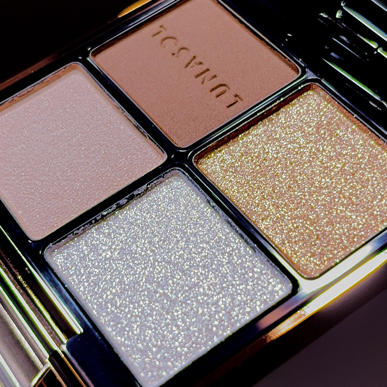 LUNASOLアイカラーレーション15FlawlessClarityFlawlessClarity肌に寄り添う洗練されたベージュにまばゆい光の立体感をまとったフローレスクラリティ左上シルバー クリアラメ右上 ベージュ左下 ゴールドラメ右下 ブ...