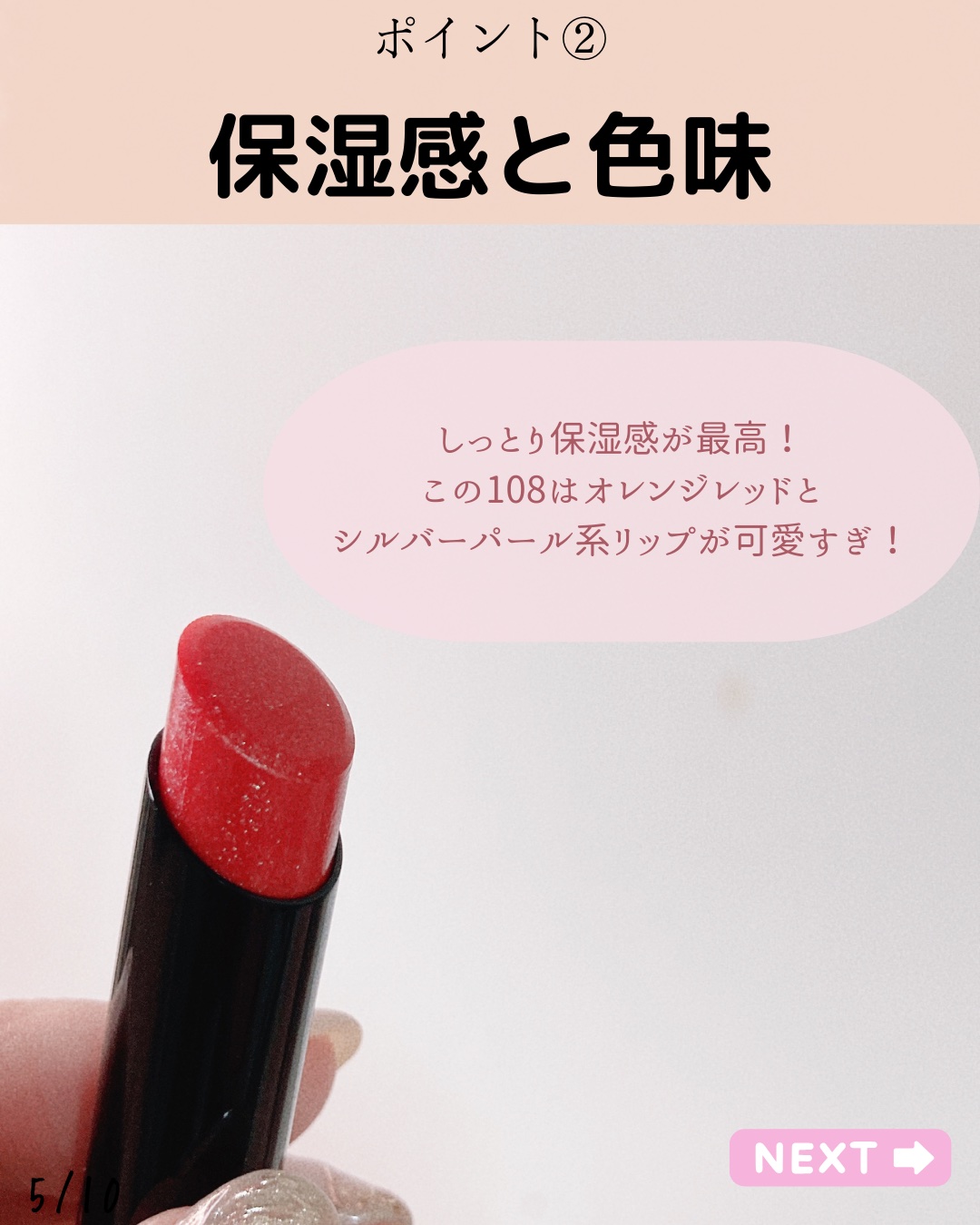 01 欲望の塊 青み寄りの明るめで澄んだピンクレッド やや鮮やかまでいけるブルベ夏、 明るさ得意なブルベ冬におすすめ! 08 モーブシャワー (WEB限定) しっかり青みの淡い青ラメ入りラベンダー 単体なら淡さ得意なブルベ夏に! ブルベ全般の重ねて青み足し要因にも◎ 15 綿雲33000ft (新色) ほんのり黄みの鮮やかめなコーラルレッド 2ndブルベでやや鮮やかまでいけるイエベ春に! 09水晶玉のマダムよりもほんのり柔らかめ◎