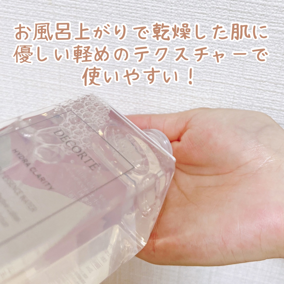 透明感の高いお肌に導く化粧水。みずみずしいうるおいで満たし、毛穴の目立ちにくいふっくら弾むようなお肌に導きます。 サラッとしたみずみずしいテクスチャー🫶肌に伸ばしやすく、肌馴染みも良い印象です🥹 何より上品な香りでテンションが上がります❤️