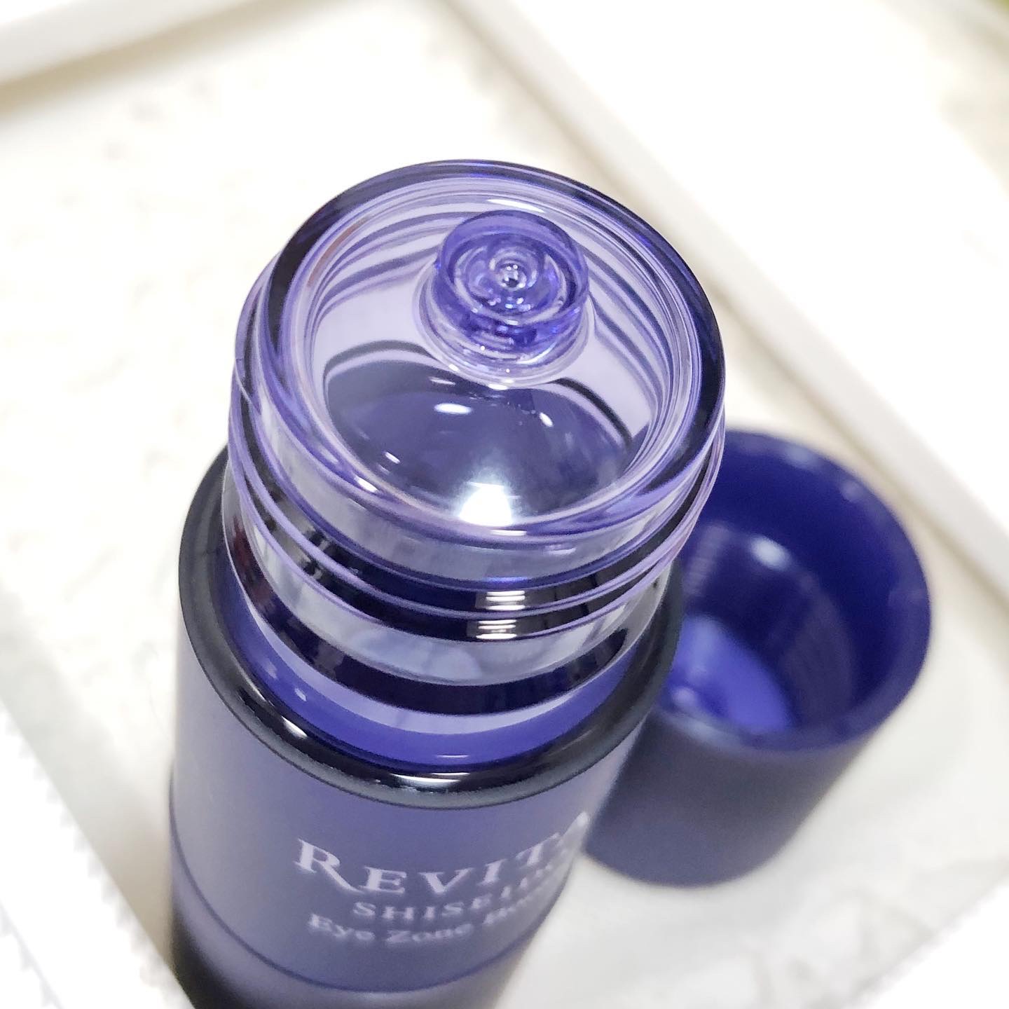 目もと用美容液「リバイタル アイゾーンブースター」が登場しました。 角層深層へ届けるため高分子ヒアルロン酸の分子構造を保ったまま折りたたむように収縮させた“コンパクトヒアルロン酸※1”を配合しています。 通常のヒアルロン酸を約3分の1サイズまで折り畳む技術によりヒアルロン酸が角層奥深くまですーっと浸透するそうです。 紫色のボトルが高級感もあって綺麗です。 底のゴムの部分を押して美容液を出します。 みずみずしいテクスチャーで、肌馴染みが良くしっとりとした使い心地です。 この付け方をすると、マッサージのようで気持ち良いです。
