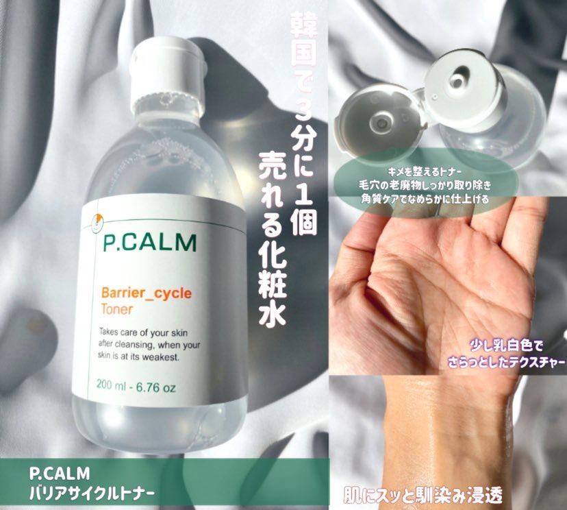 P.CALMバリアサイクルトナー肌のゆらぎを感じやすい時期にも使いやすい低刺激処方の拭き取り化粧水🌿洗顔後の肌にすっとなじむ軽やかなテクスチャーで、不要な皮脂や角質をオフしながらみずみずしいうるおいを届けてくれます💎ナイアシンアミドやパンテノ...