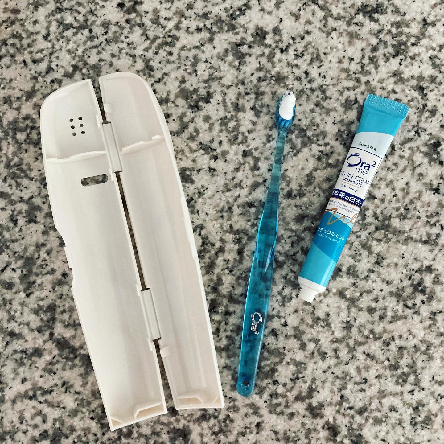 - ①人目を気にせず持ち運べる、中身が見えないスタイリッシュなデザインのケースでブルー・ホワイト・ピンクに新色パープルを加えた4色のカラー展開です。 ②小さなバッグにも入れやすいスリムでコンパクトなケースです。 ③ケースは抗菌加工されており、通気性も良く、衛生的です。 ④オーラツーミー ハブラシ ステインクリア(ふつう)とオーラツーミー ステインクリアペースト[ナチュラルミント]20g(医薬部外品)との組み合わせです。 ※2025年9月上旬〜パッケージリニューアル