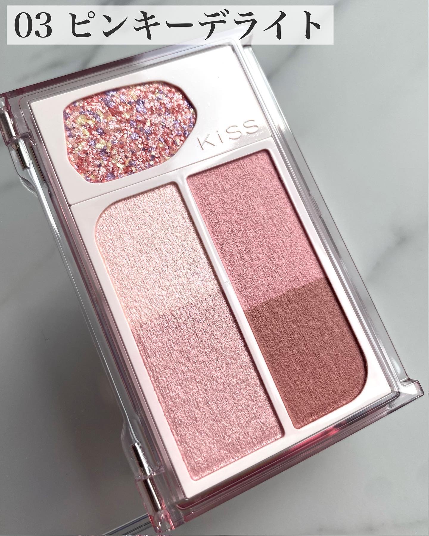 キャンメイクシルキースフレアイズ11ブロッサムシャワー¥825◇質感 4色ともに柔らかくてのびがいいですどのカラーにもたっぷりラメが入っていますが、ラメ飛び、ラメ落ちは気になりませんでした◎ ◇色味 1stブルべ夏/2ndイエベ春 左上→ブル...