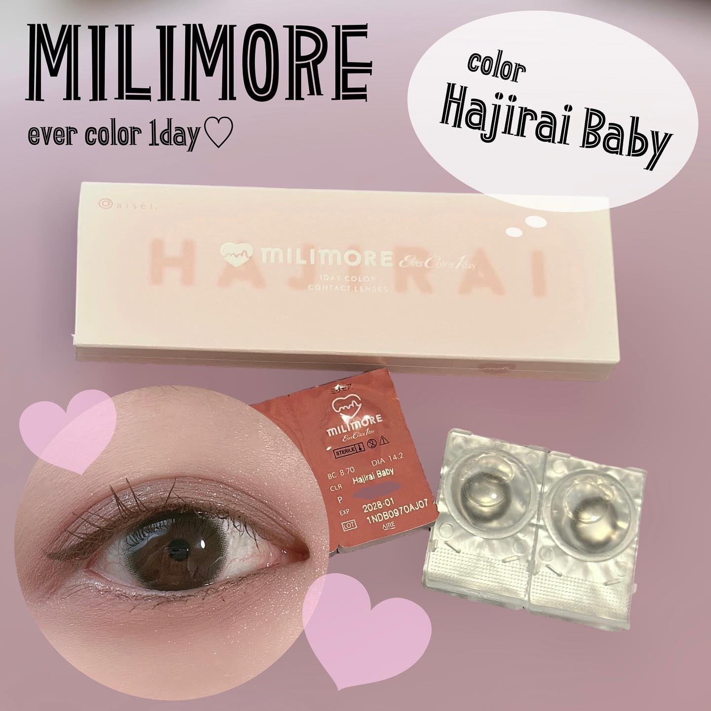 小さくても盛れる⟡.·ミリモア全8色レビュー💎🩶⟡エバーカラーワンデーミリモア全8色/各¥1,694(税込)▫️𝗟𝗘𝗡𝗦𝗦𝗣𝗘𝗖DIA:14.2mmG.DIA:13.1mm~13.6mmBC:8.7mm度数:±0.00~-8.00含水率:60...