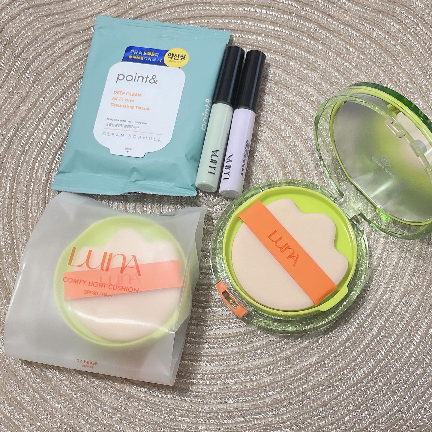 LUNAコンフィーライトクッションパフの形がアヒルの足みたいに可愛い!ふわふわで肌辺り良くテクスチャーは、みずみずしくてしっとりするからクッションファンデ付けてるんじゃなくて美容液付けてる感覚!カラーは01選んだ!ピンクベースではなくベージュ...