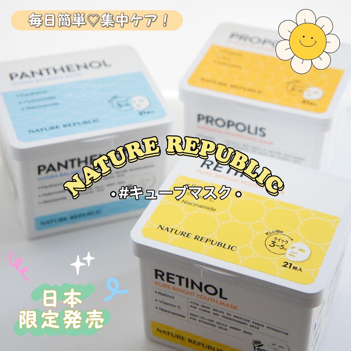 NATUREREPUBLICレチノールピュアブライトユースシートマスク パンテノールハイドラバランスシートマスクプロポリスインテンシブナリシングシートマスク内容量▷▶21枚入り販売価格▶各1,870円(税込)𓈒𓏸𓐍𓂃𓈒𓏸𓂃◌𓈒𓐍𓈒𓈒𓏸𓐍𓂃𓈒𓏸...