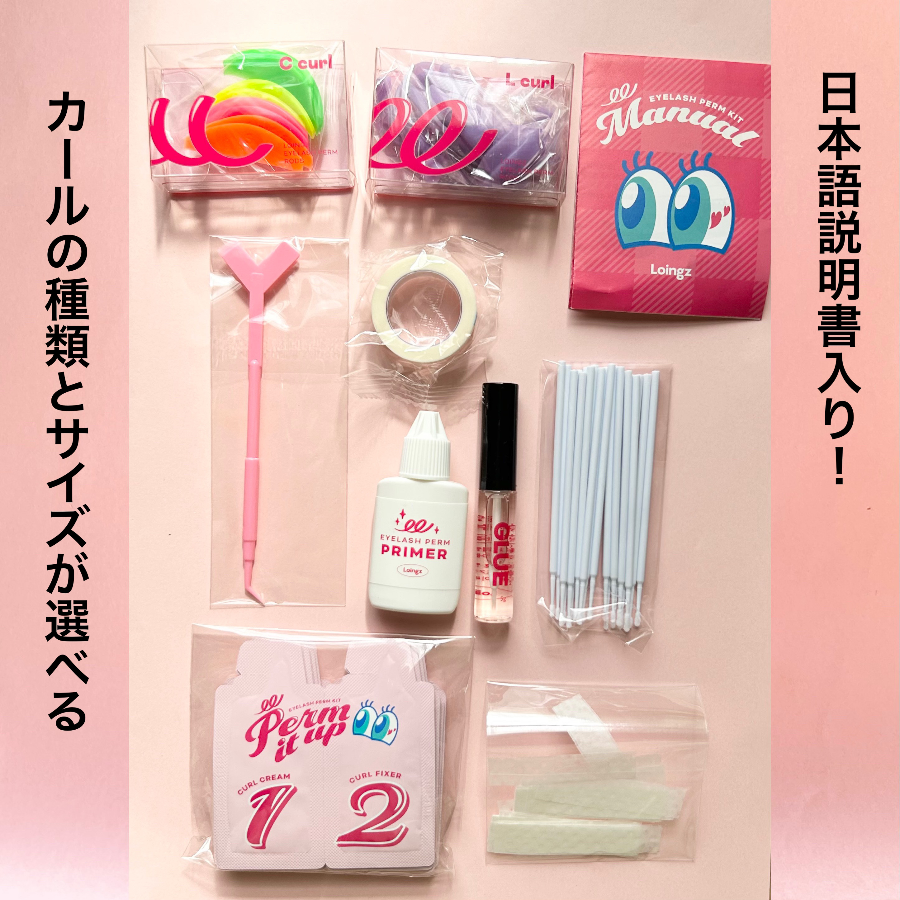 自宅でまつ毛パーマが出来るよ✨️ 必要な物が全て揃っていて、日本語の説明書付き。 CカールとLカールの選べるロッドにサイズも豊富🫶 翌日もしっかりカールしていて嬉しいです🙌